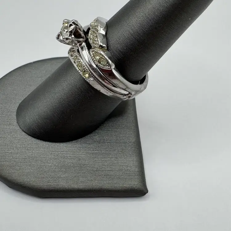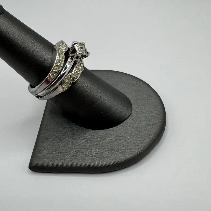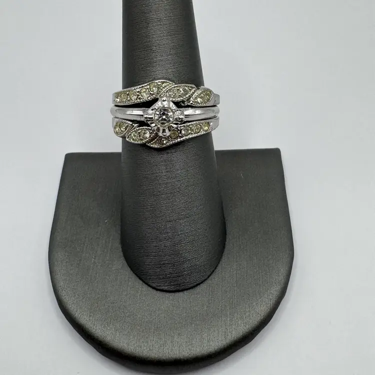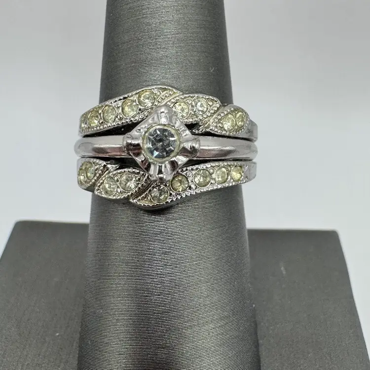 As shown, Sterling silver ring size 6.34, great for substitute wedding ring while traveling