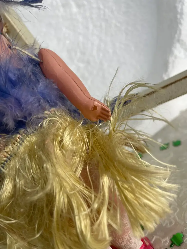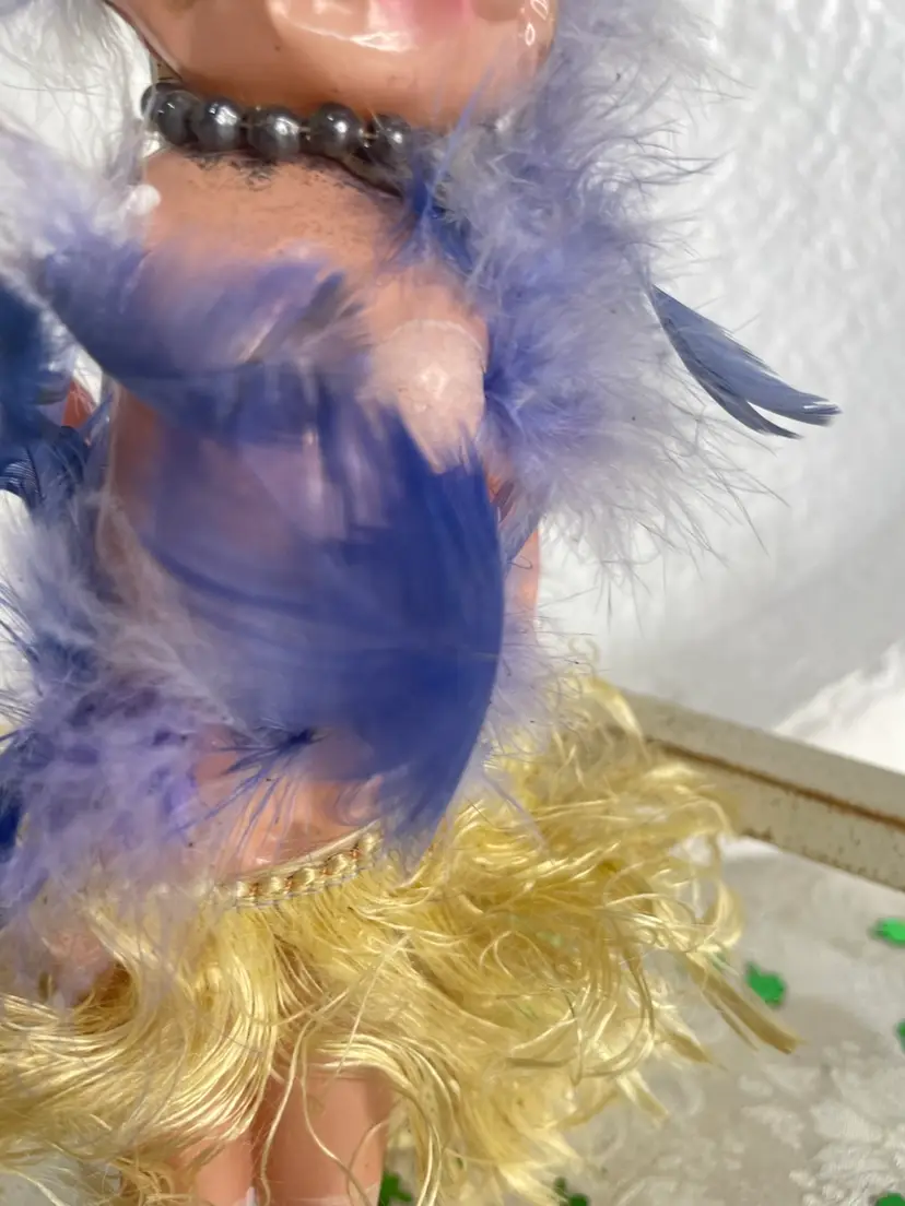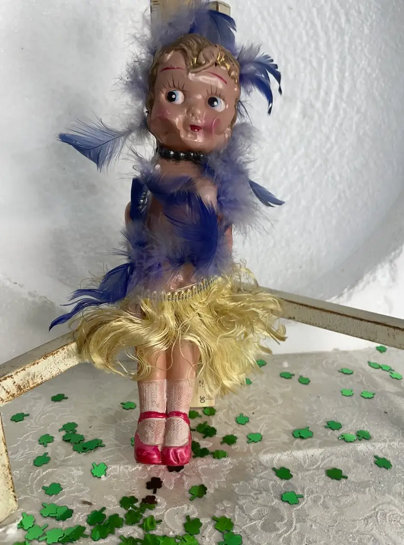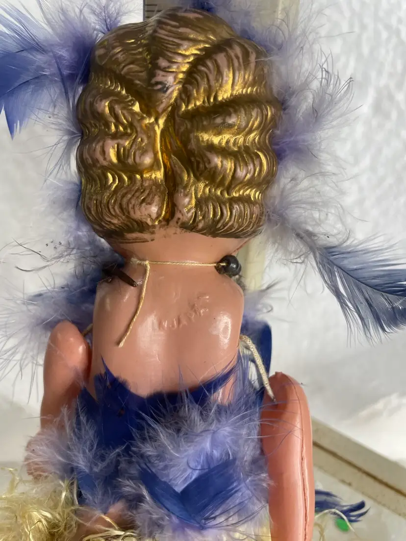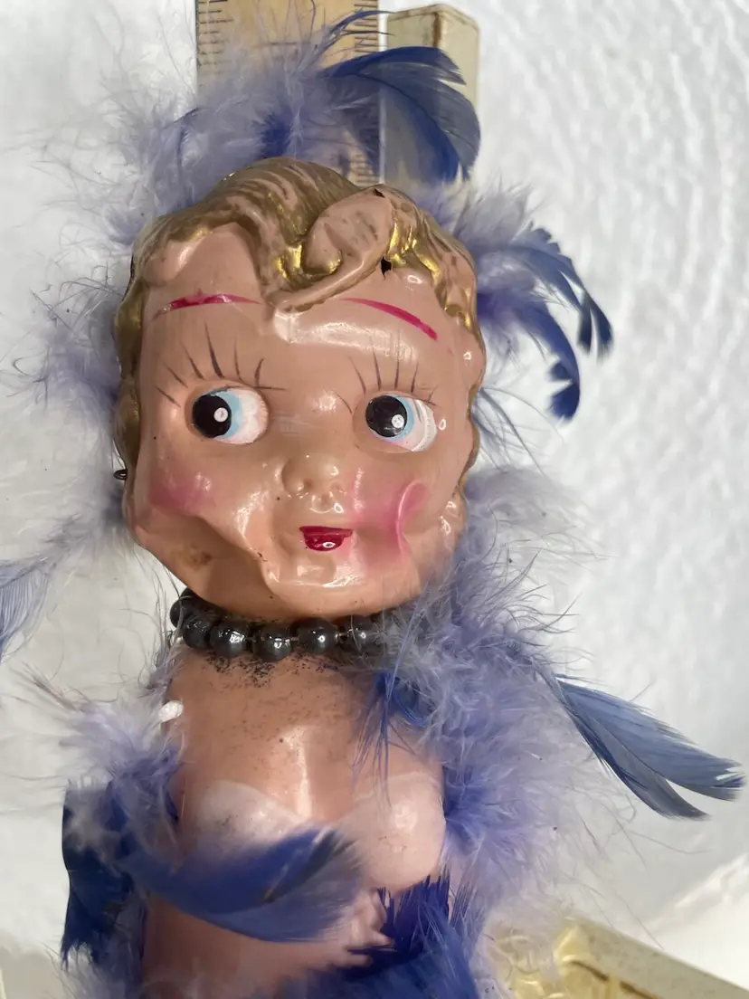 VINTAGE CELLULOID CARNIVAL KEWPIE SOUVENIR CIRCUS HOOCHIE COOCHIE DOLL 7.25" Damage as shown in pictures