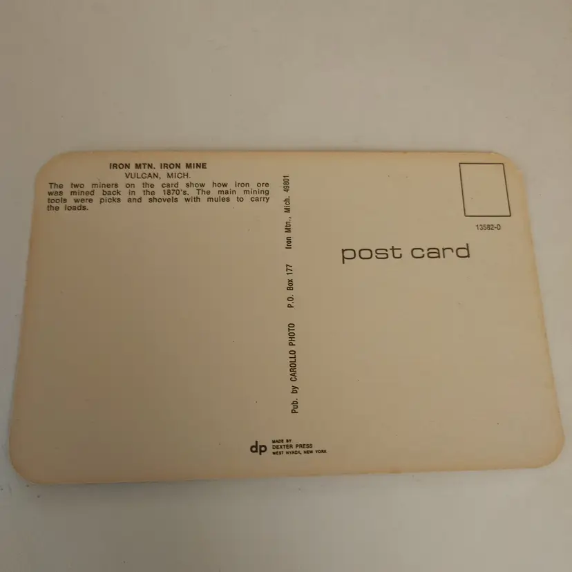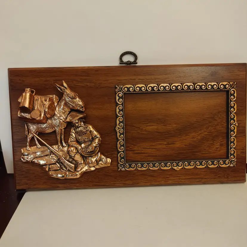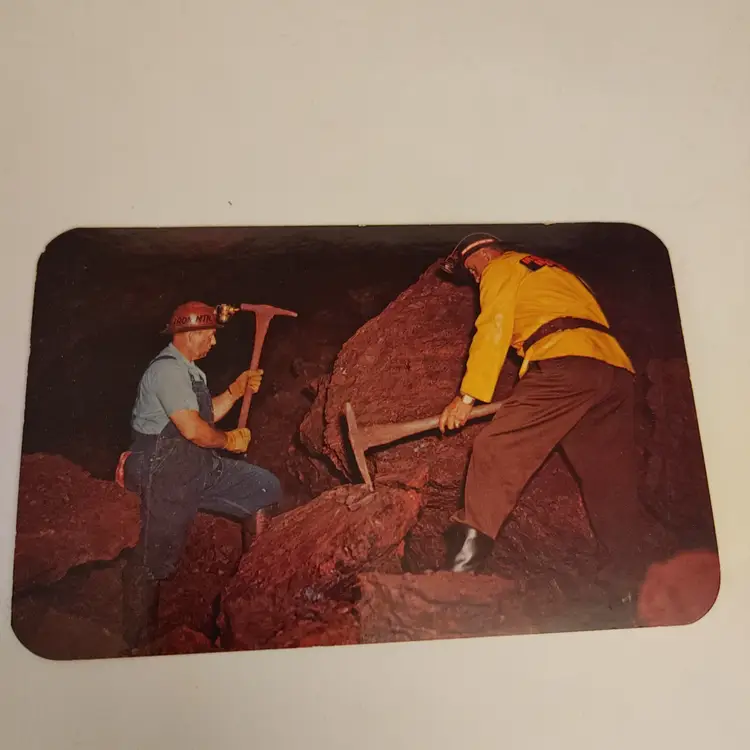 3d miners frame with postcard. Miner and donkey. Frame made in Canada. Postcard from Iron Mountain, Iron Mine. Vulcan, MI.