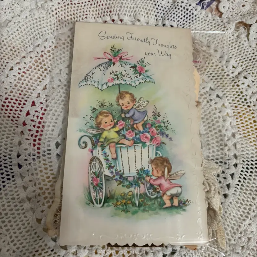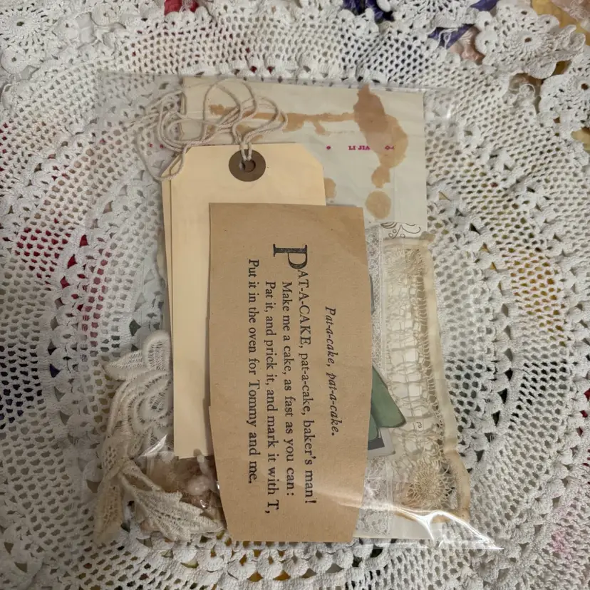 Premade with all sorts of vintage ephemera lace buttons and more to use to create a collage art of your own.