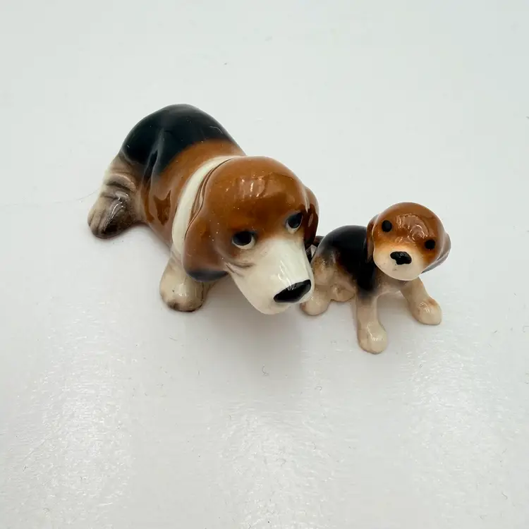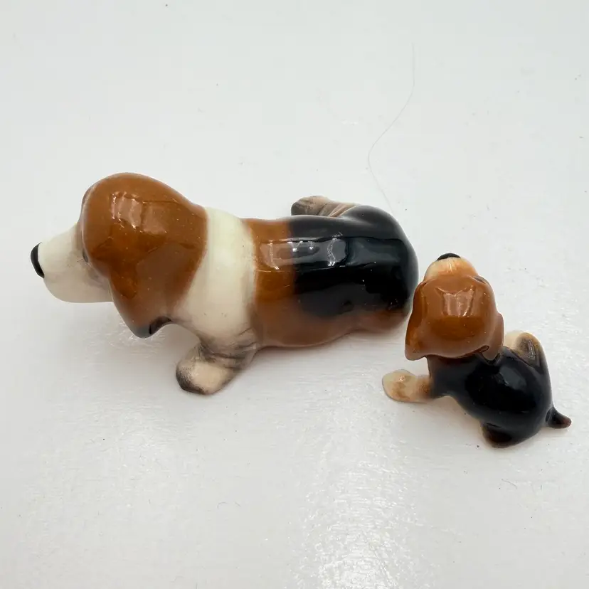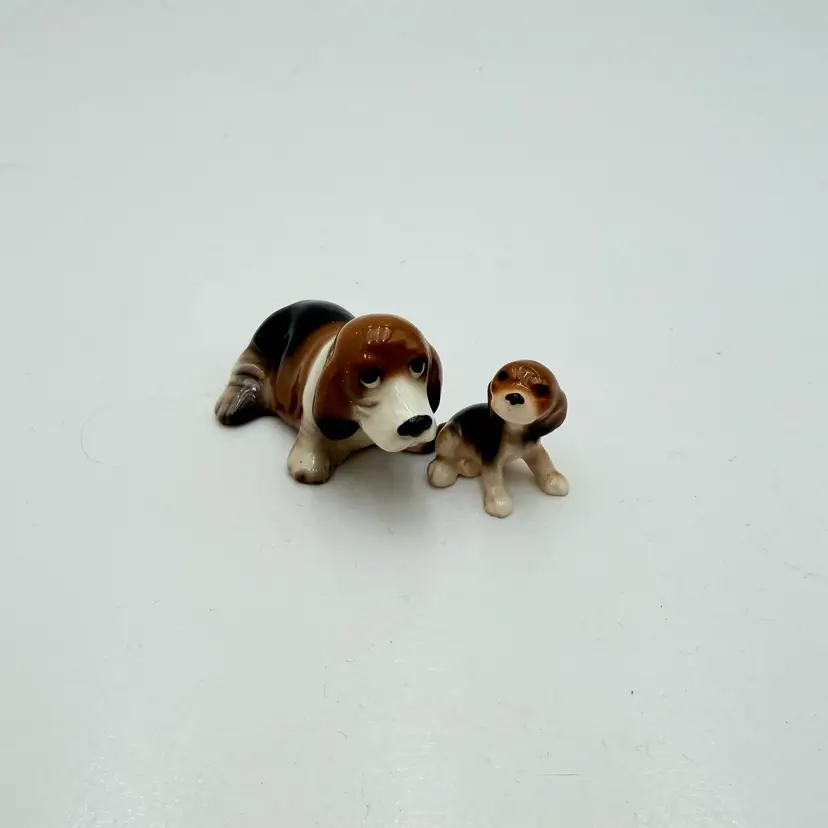 Bone China Hagen Renaker Basset Hound Dad And Pup