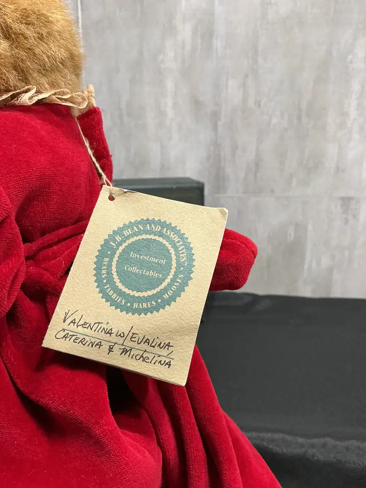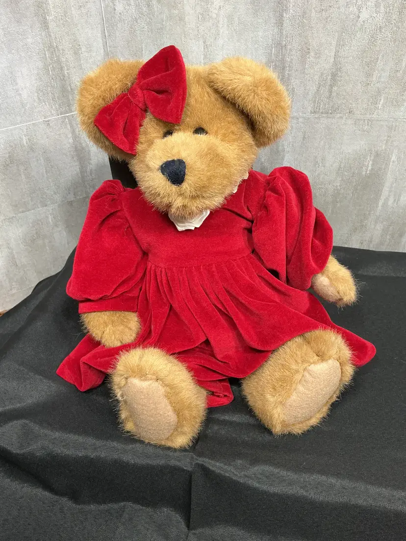 Boyd’s Bears Bear in red velvet dress and pants with matching red velvet bow 1998