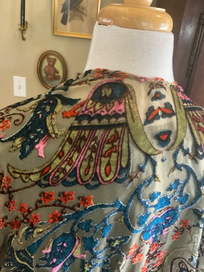 Burnout Velvet Wrap Blouse Semi Sheer Pattern “ Tree Of Life” Motif 1990’s Vintage