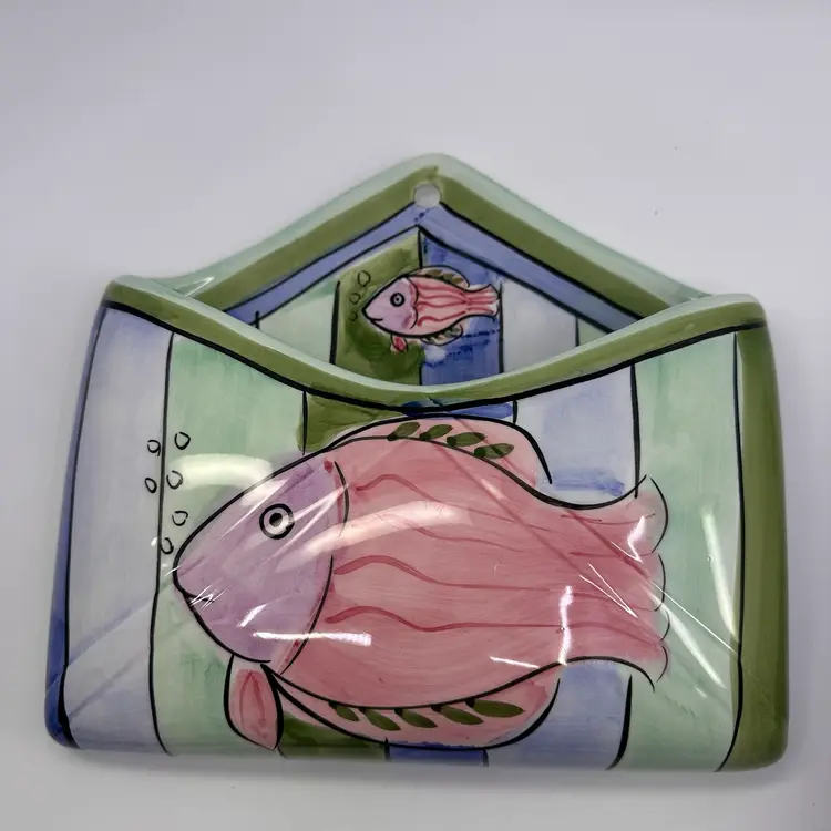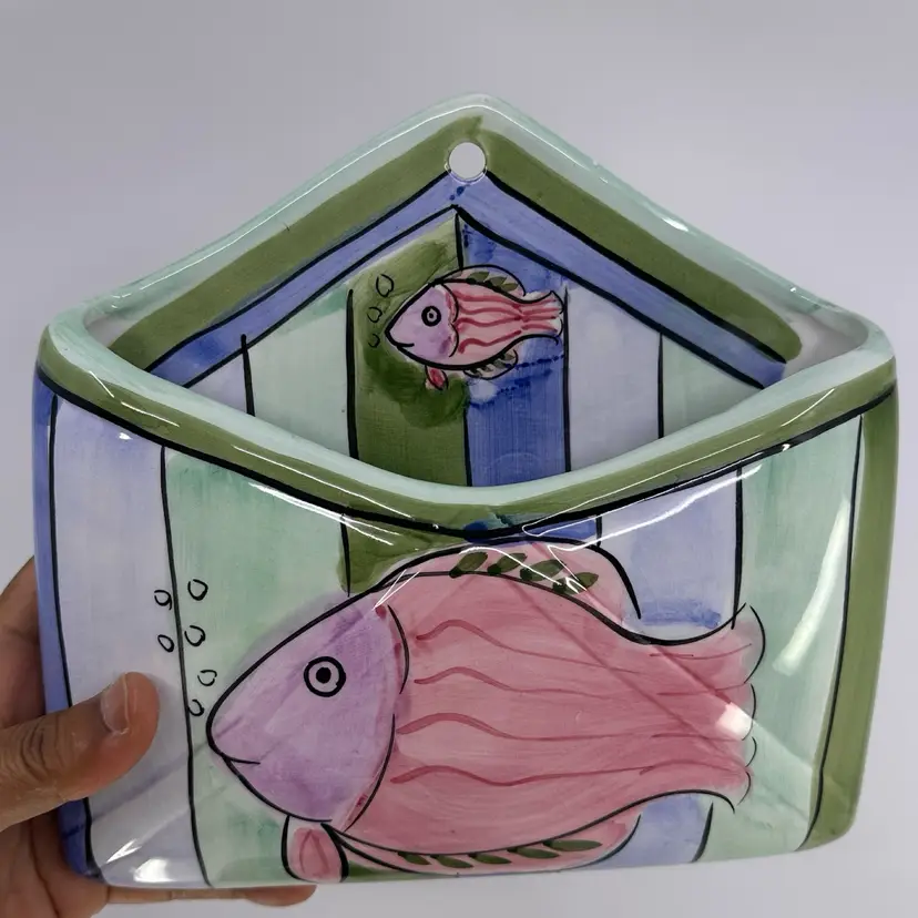 Ceramic Envelope Style Wall Pocket With Fishes 8”