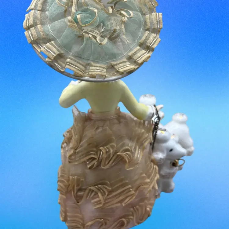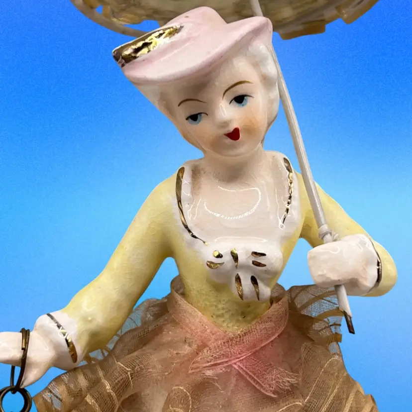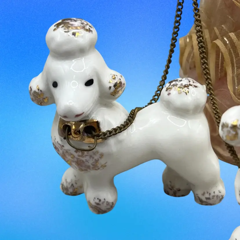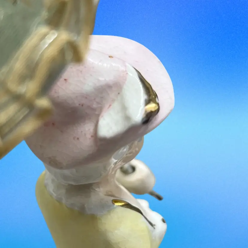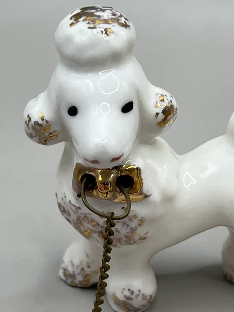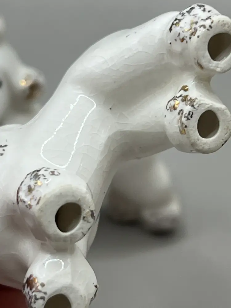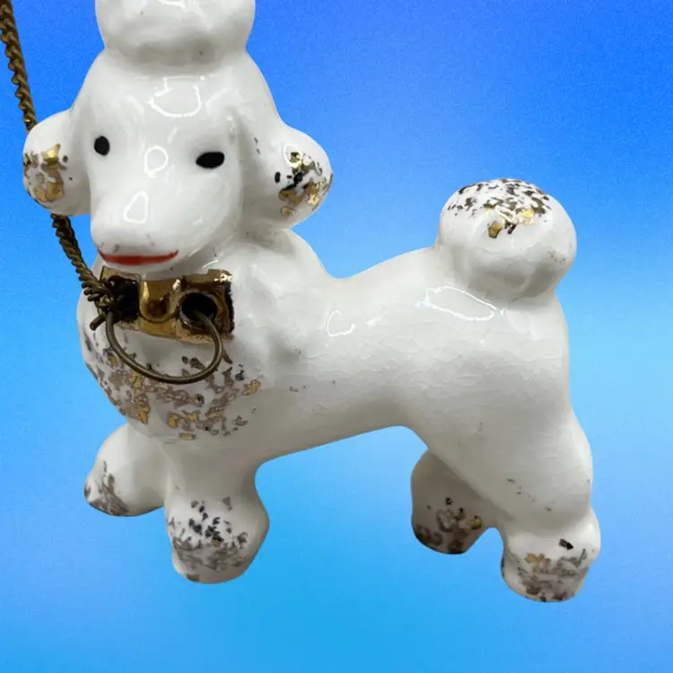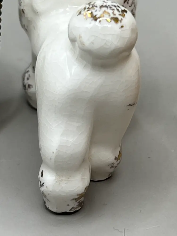 No chips! There is crazing on the girl and the poodles. Possible gold loss on her hat. The lace dress and parasol may have discolored. One of the poodles has some rough spots on his tail. The ring of the leash comes off of her hand easily. Please see all pictures!