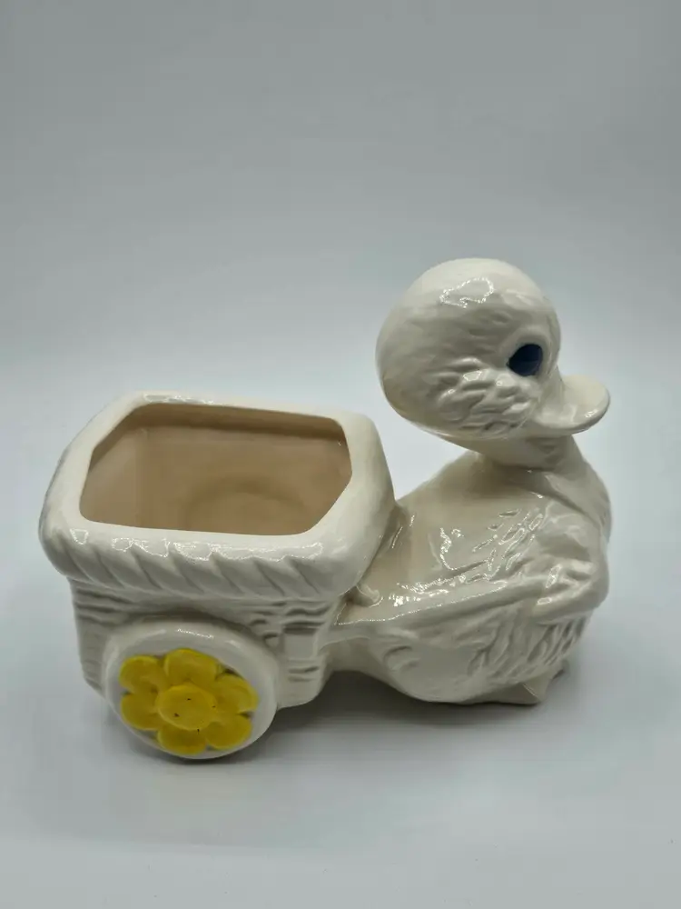 Ceramic White Duck w/Wagon Planter