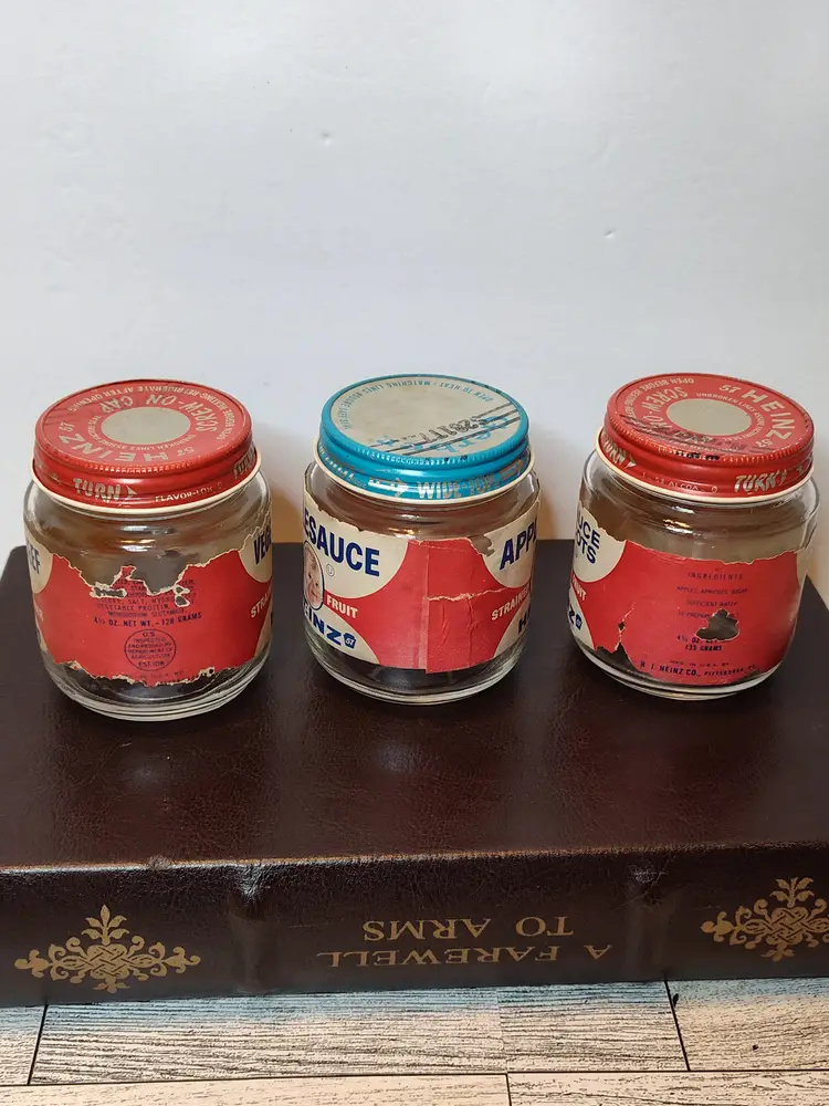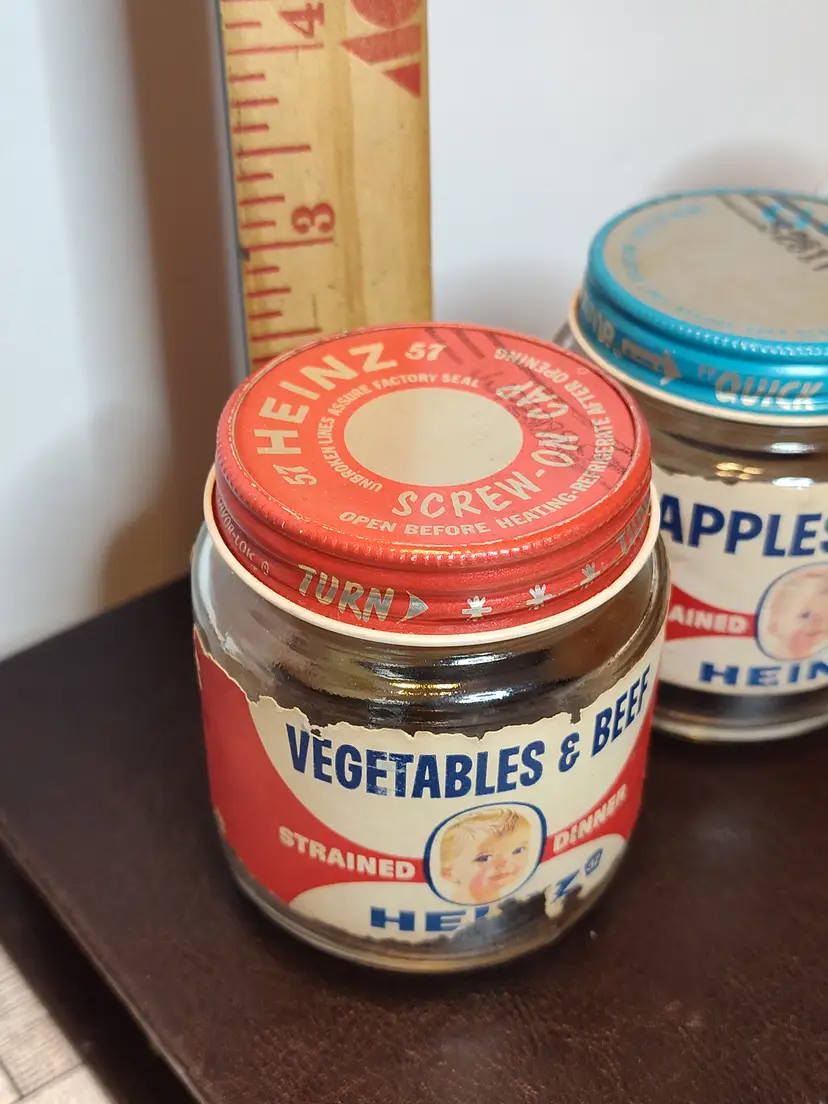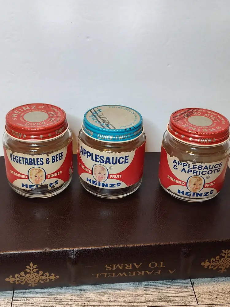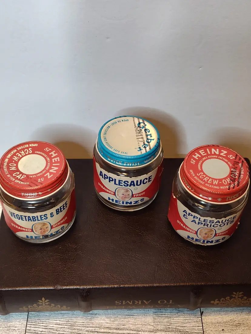 All Heinz glass jars- applesauce, vegetable beef or applesauce & apricots.