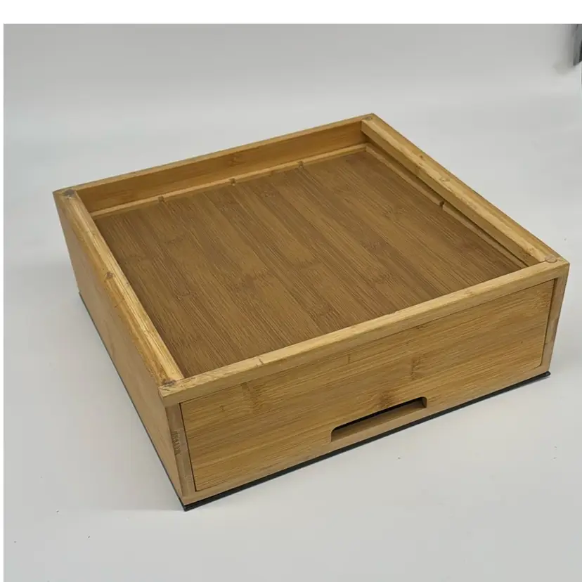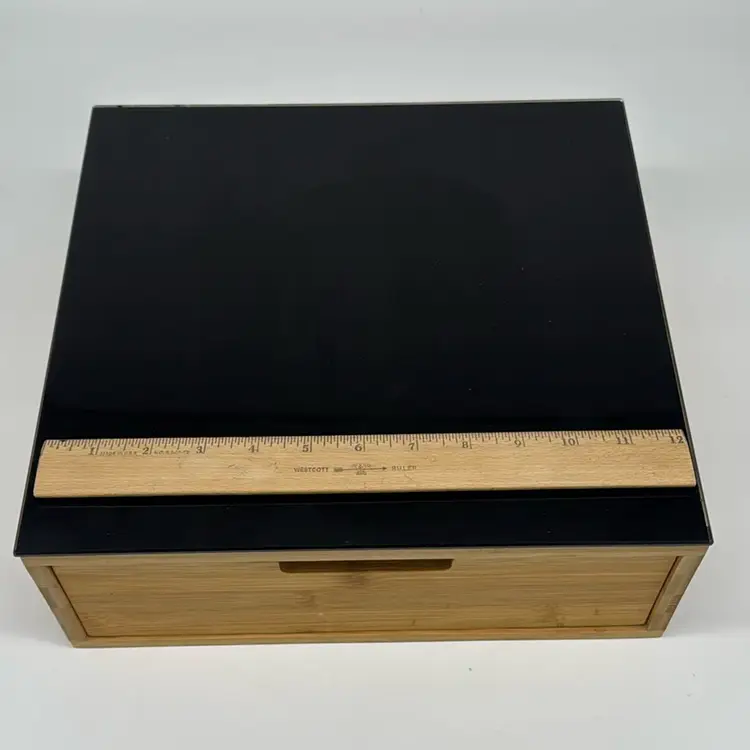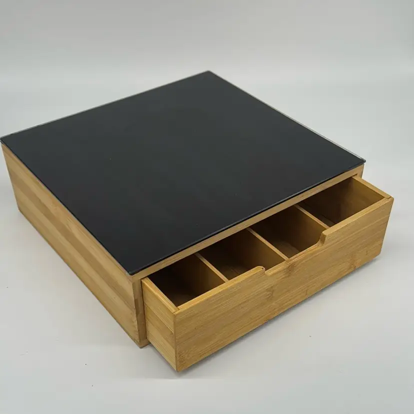 Coffee Capsule Holder - Bamboo With Black Acrylic Top Double Drawer 12”x12”x4.5”