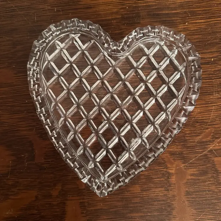 This crystal tray is in excellent condition with no noted flea bites. Two small air bubbles noted in close inspection. Back is pressed form but raised edge seems to be cut based on sharpness.