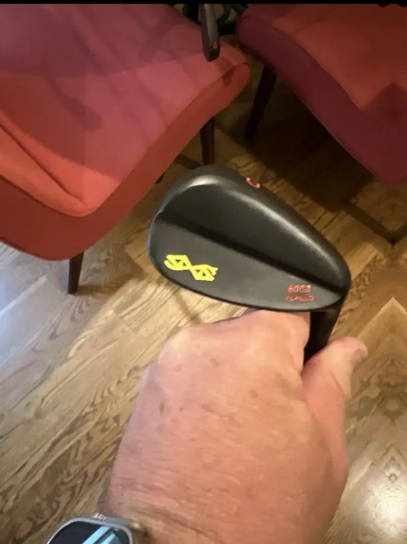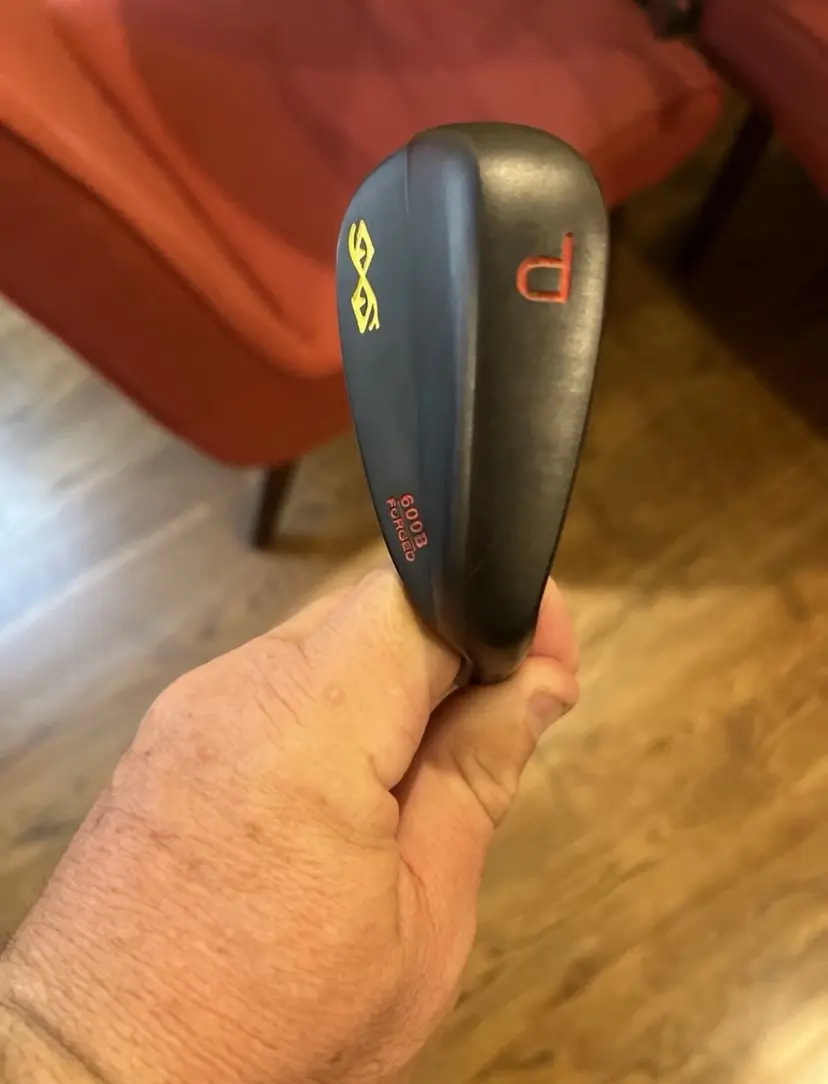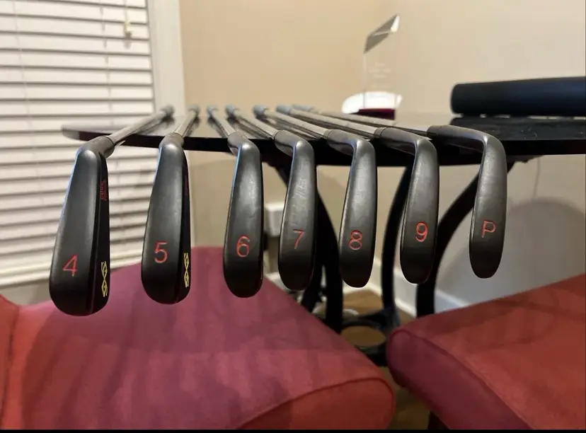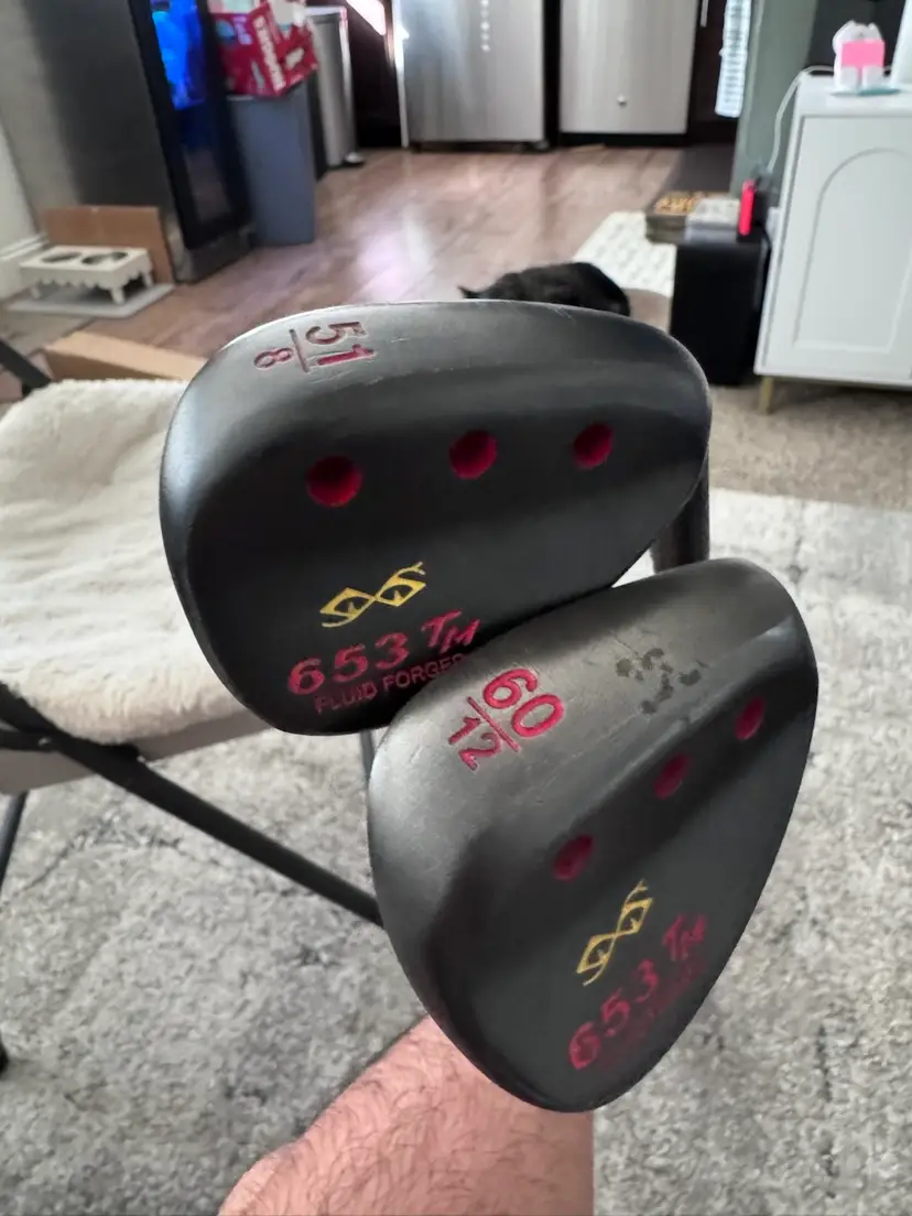 4-Pw, 51° and 60° all refinished in black. Groves have lots of life left in them. X100 shafts and mid-size grips