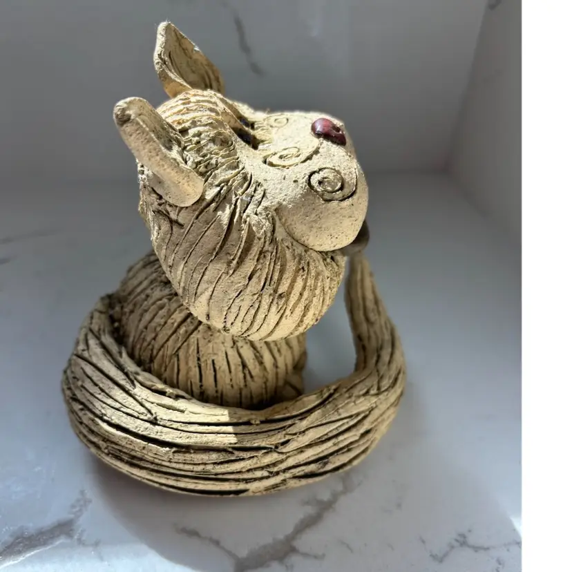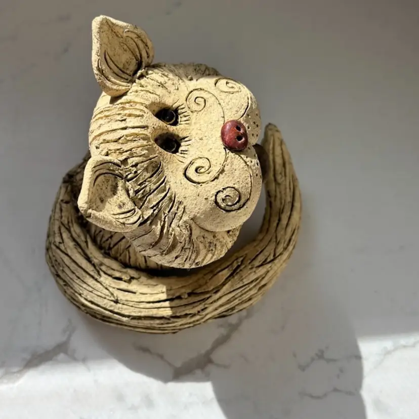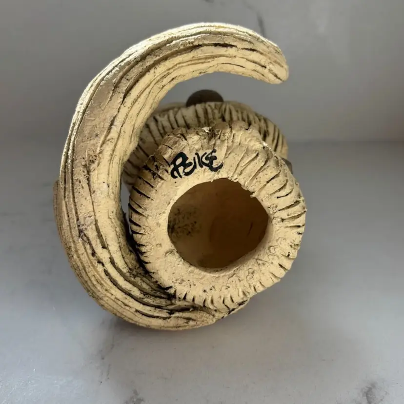 Hobbyist piece? Signed. No chips cracks or repairs. 5” tall. Small chip to tail. Rough texture.