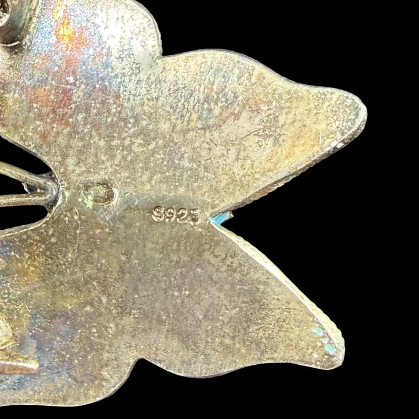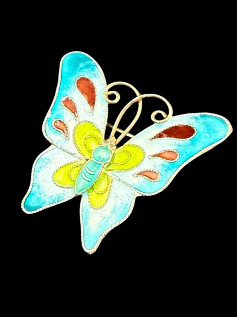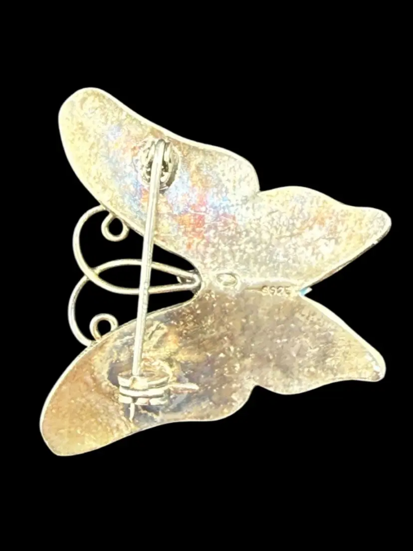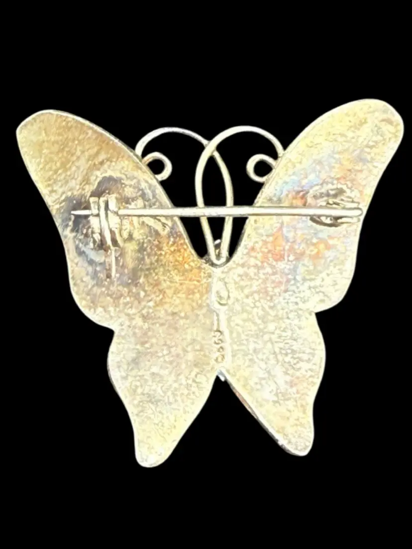 Enamel Butterfly Pin Brooch Marked S925 1.5"
