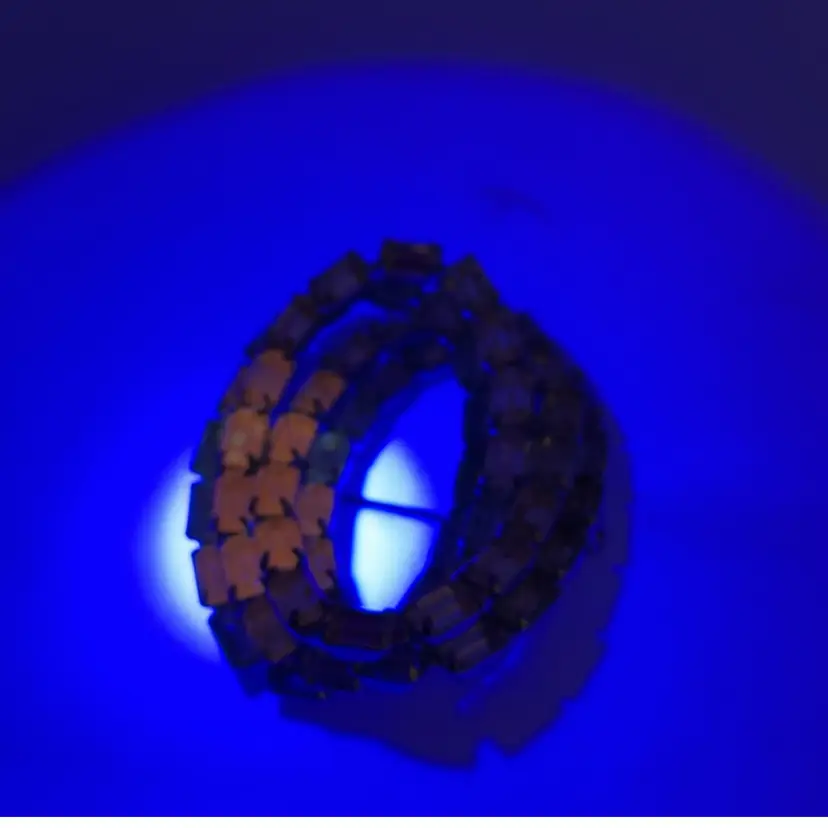 Fair preowned condition with normal signs of use and wear. Some metal discoloration as shown in pics. Weiss mark. Clasp works proper. Needs a deep cleaning. Glows orange.