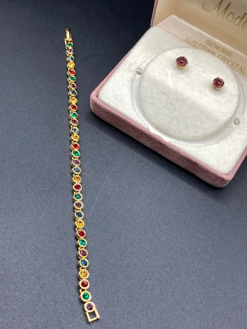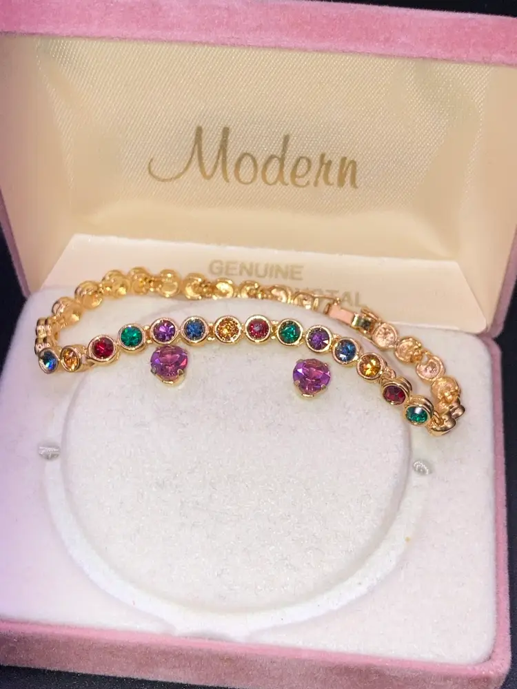 Genuine Austrian Crystals Goldtone Set By Modern! Pierced Postback Earrings And 7โ Bracelet! ๐โจ๐ In the original box! NEW to District? Enter code Michel42 into your wallet prior to your first purchase and save $5 off of $10 or more! Happy Hunting! Thank you for checking out my items! I do combine shipping and refund for any overages!