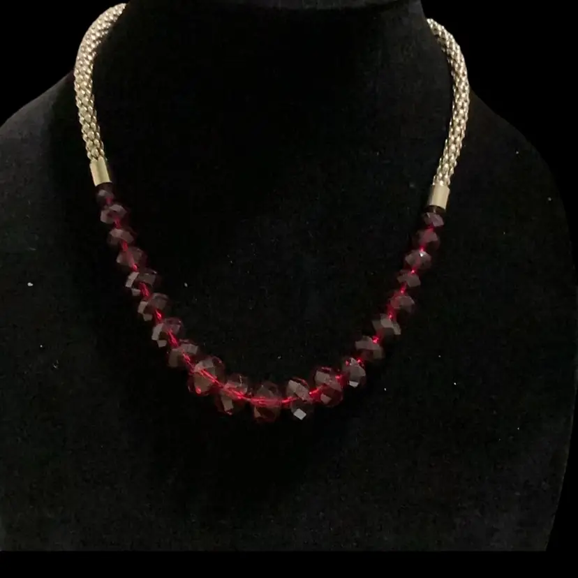 Gorgeous Faceted Red Glass Beaded. Graduated Glass Beads.Larger In Center & Becomes Smaller Toward The Ends. Signed JNY~ Jones New York.