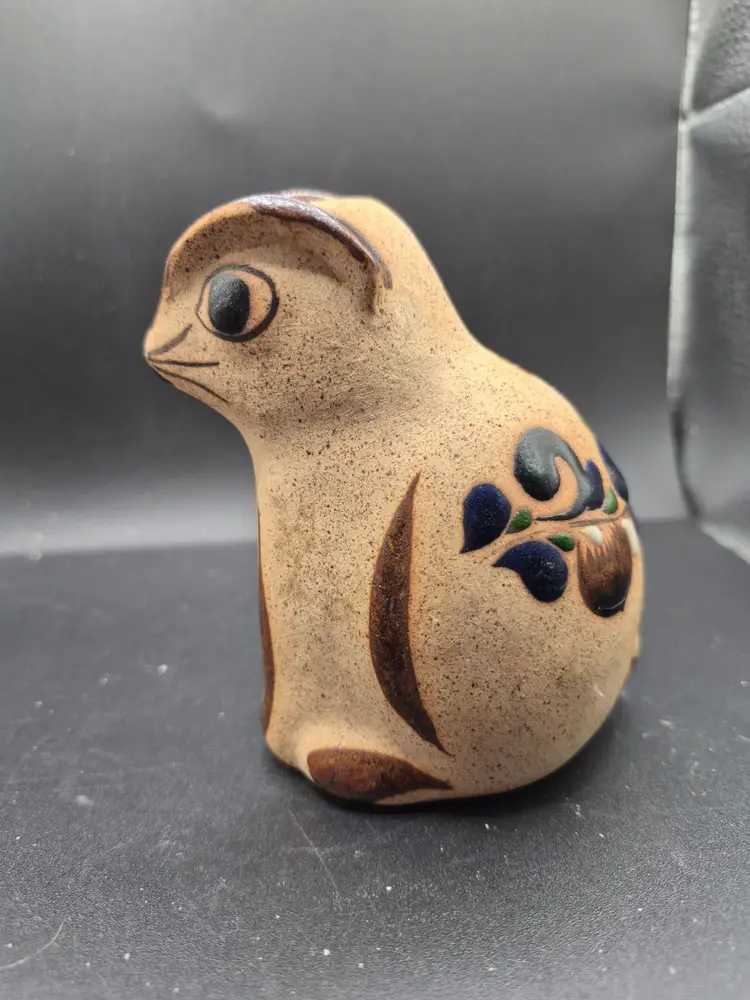 In a quaint artisan's studio, this ceramic chipmunk was brought to life. With its expressive painted details and delicate floral accents, it captures the charm of nature and whimsy in a timeless piece. A delightful addition to any collection or as a standalone display that tells a story of skilled craftsmanship.