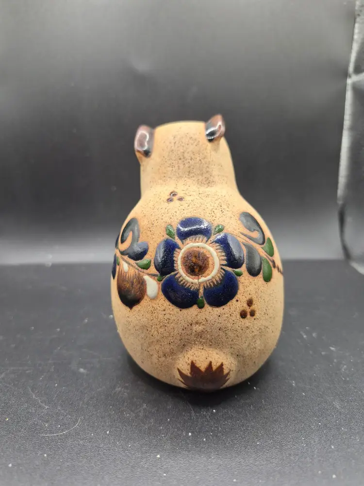 • Hand-painted floral patterns • Earthy textured ceramic • Unique artisan craftsmanship • Compact and lightweight design • Decorative collectible piece