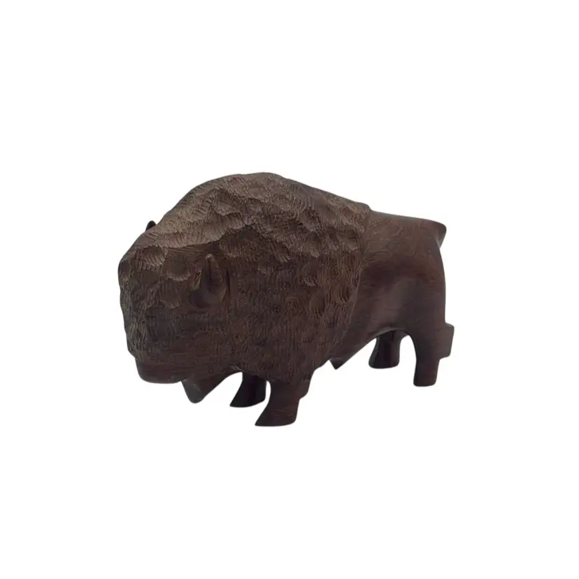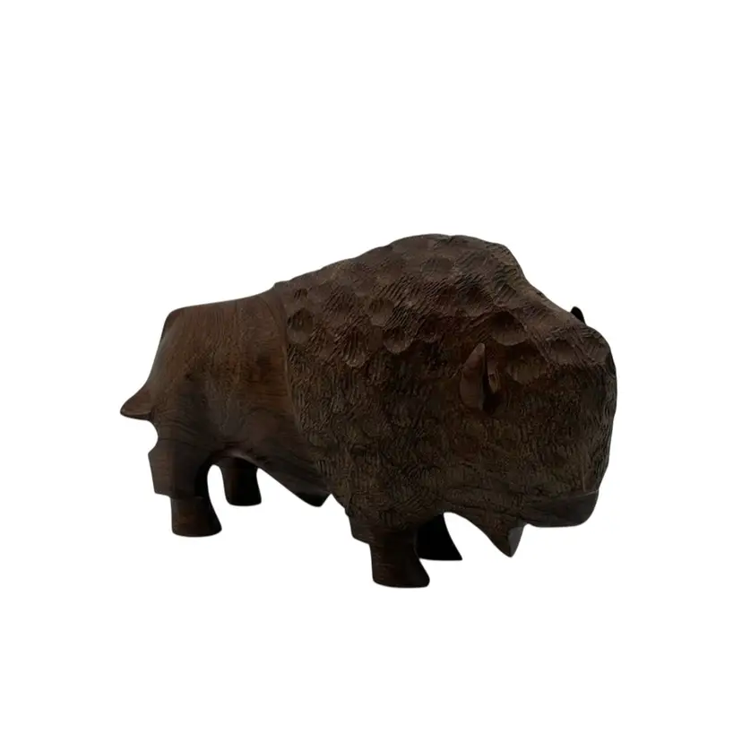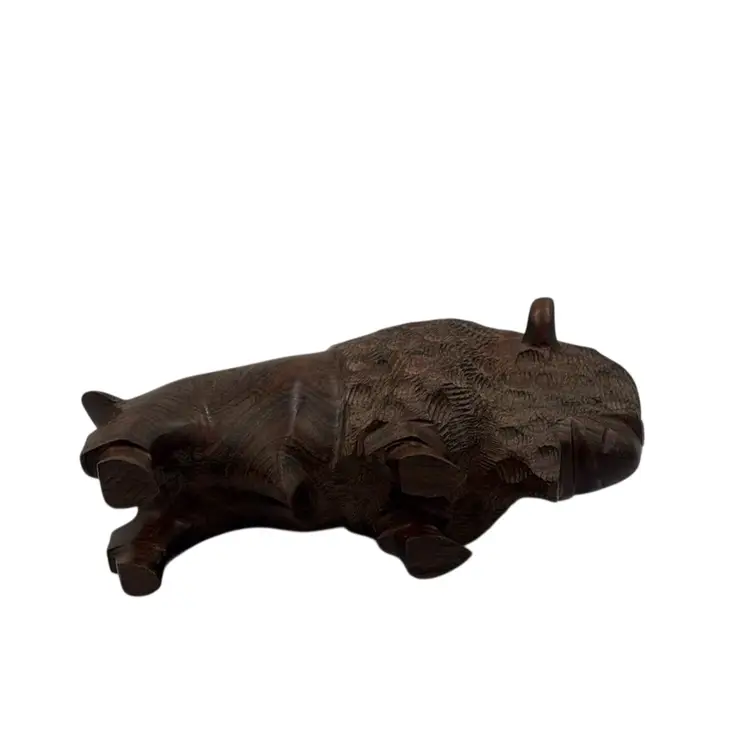 Beautifully carved wooden bison figurine. Perfect for adding a rustic touch to your decor. Measures 8x3x5 inches.