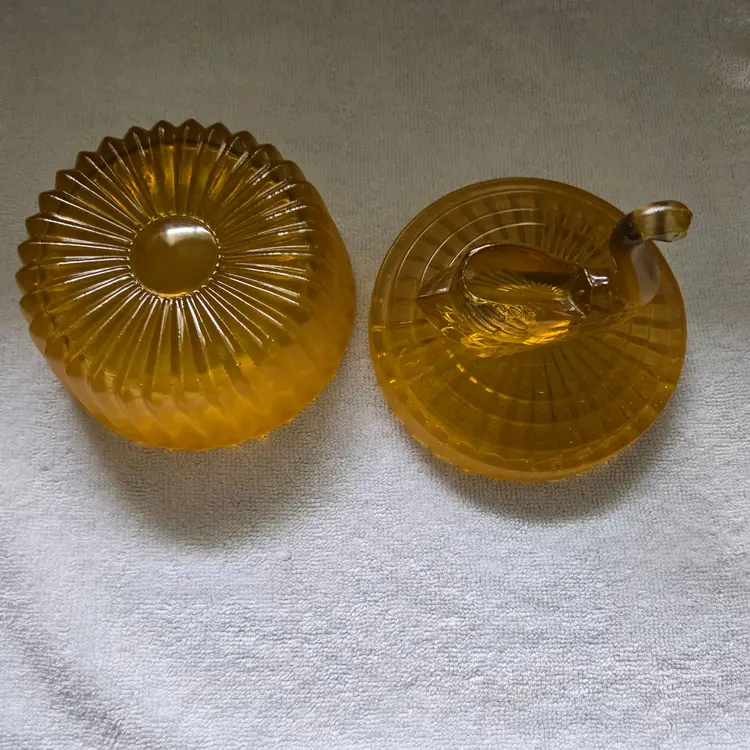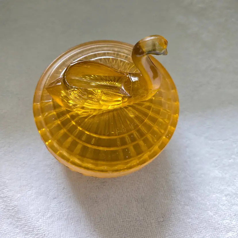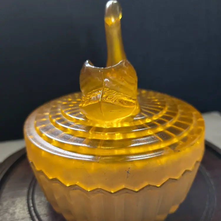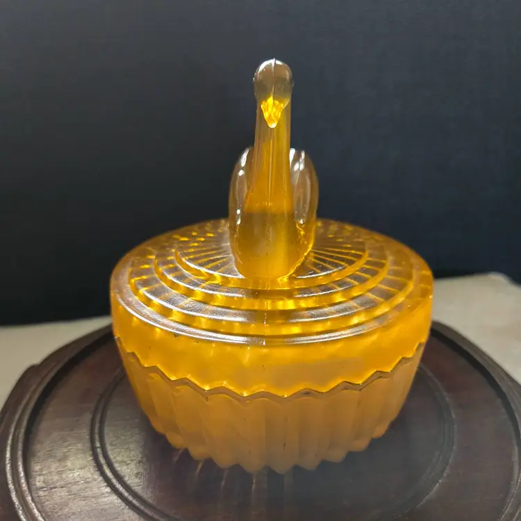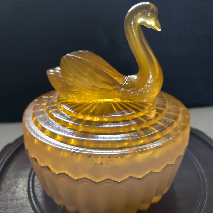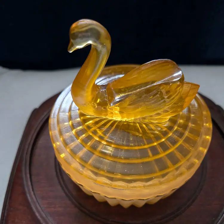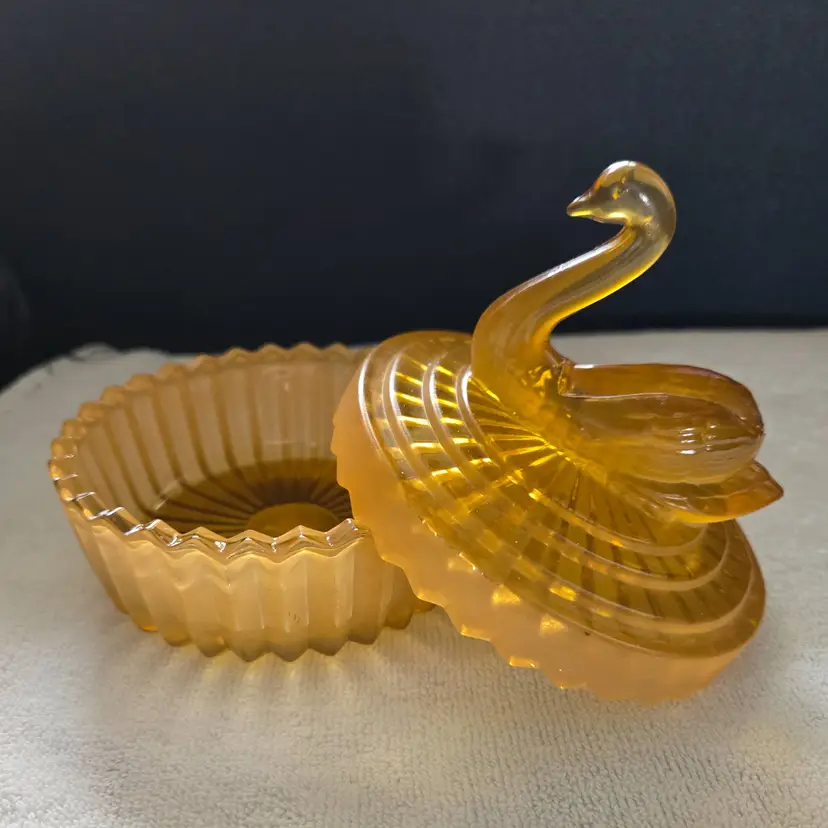 Jeanette Lusterware Amber Glass Swan Powder /Dish- Lipstick Holder