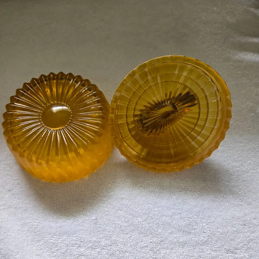 Amberina Glass trinket box for your vanity items. It was crafted in the 1930's. Handmade and fused. Measures 5" high and 5 1/2" across. A beautiful edition to your vanity or use as a candy dish. No chips, cracks, or repairs.