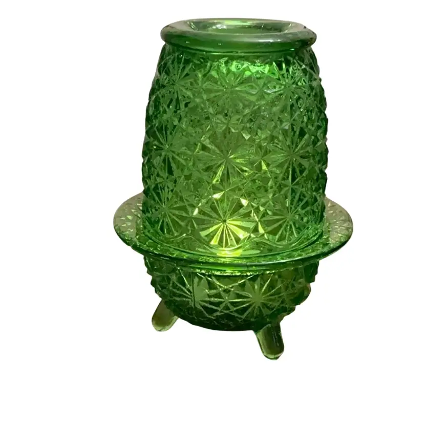 Gorgeous true green color glass on this fairy lamp. No condition issues. Unique 3-toed design. Perfect for Christmas or St. Patrick’s day celebrations.