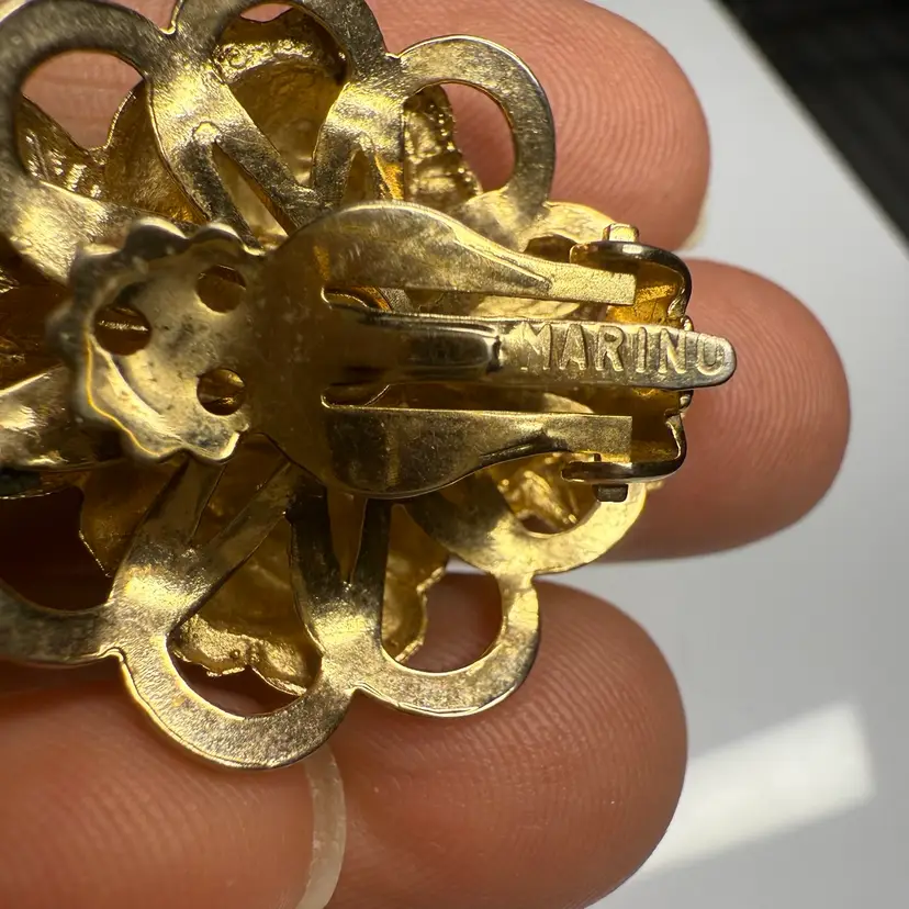 Marino Domed Antiqued Goldtone Clip On Earrings 1”