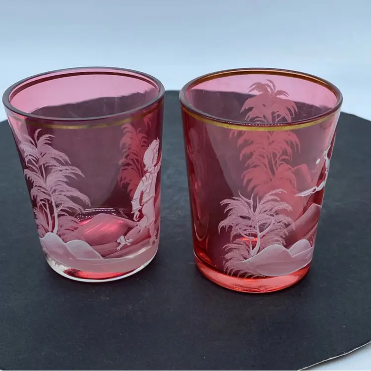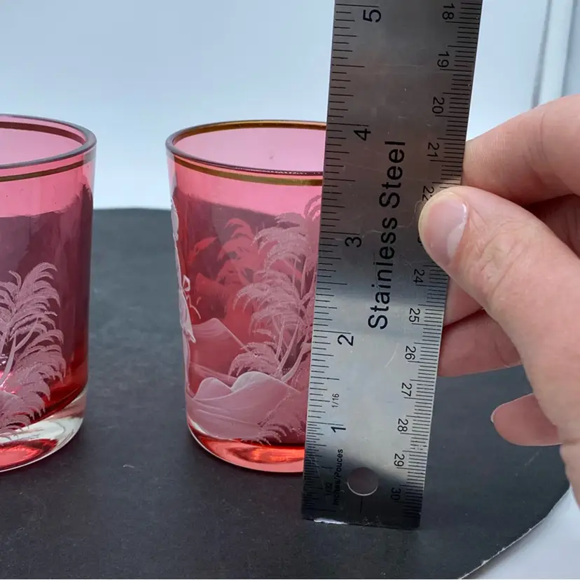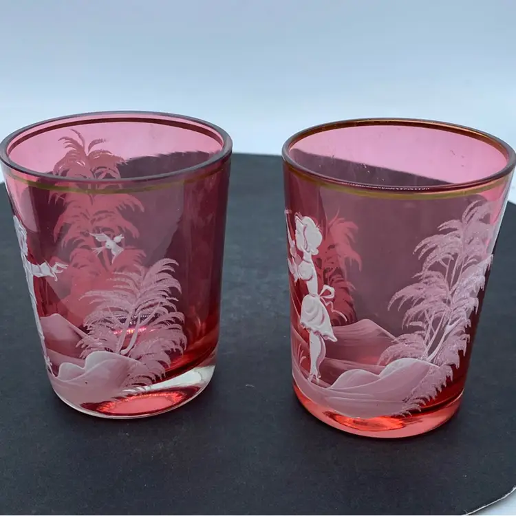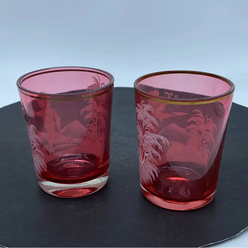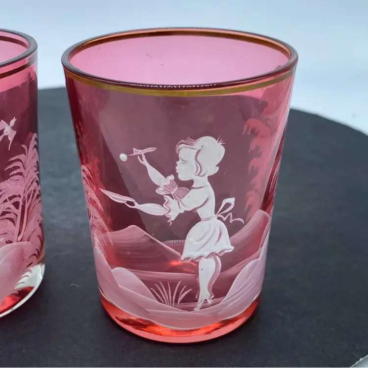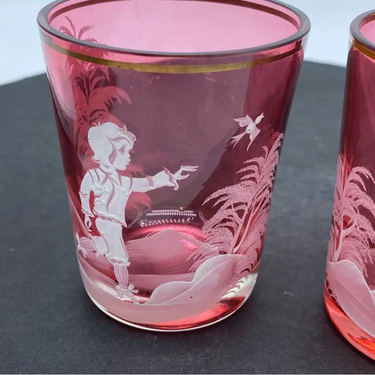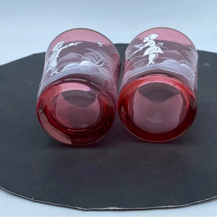 #0427 Mary Gregory cranberry glass tumbler Pair .