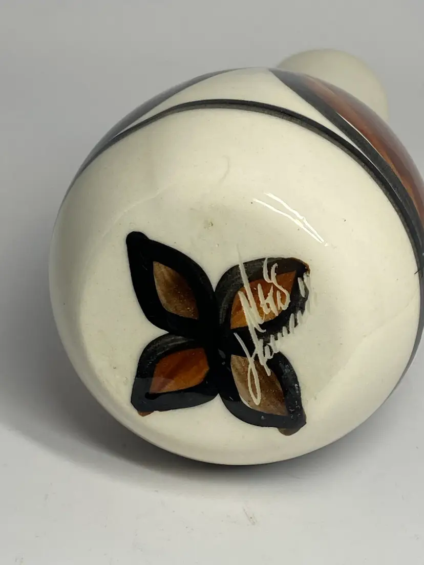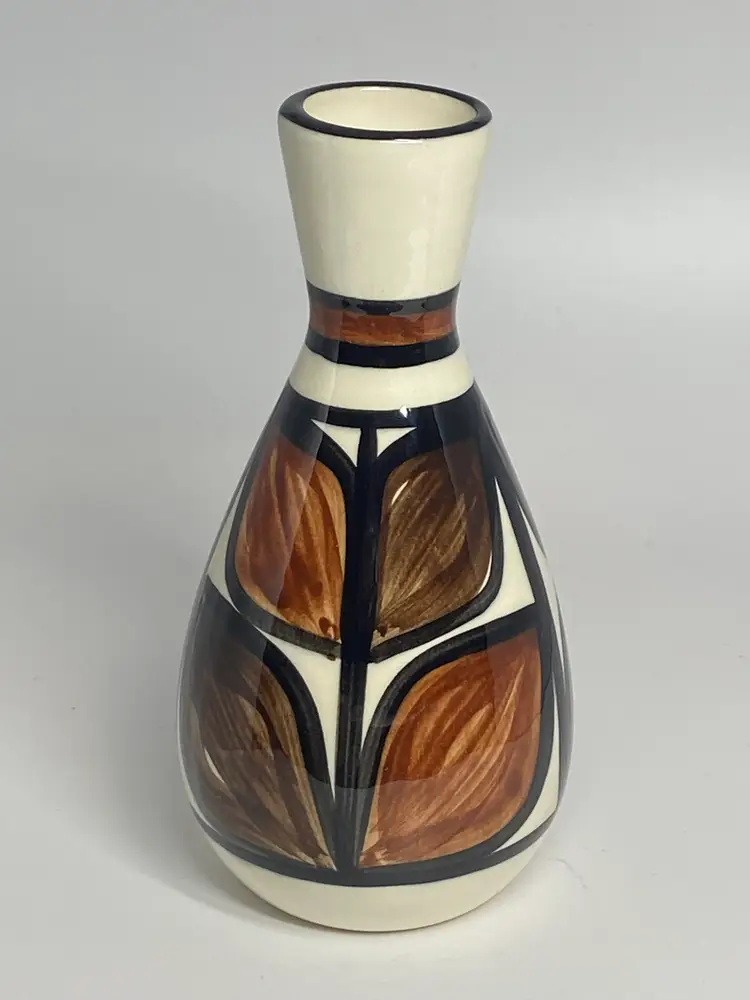 Ng's Hawaii Ceramic Vase w/ Hand Painted Floral Geometric (Tapa) Design , 6"
