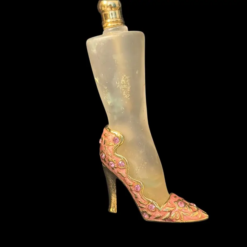Pink Enamel and Rhinestones Shoe Perfume Bottle