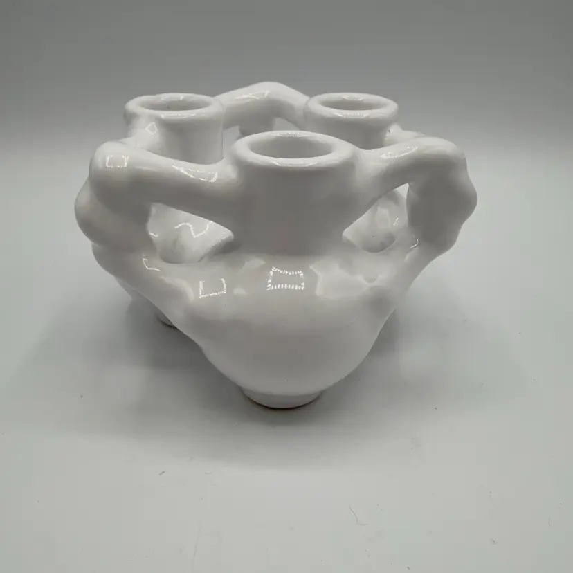 3 1/2” x 5” excellent condition fuddling cup was a joke cup to see if you could drink out of it without spilling it is actually really pretty vase!