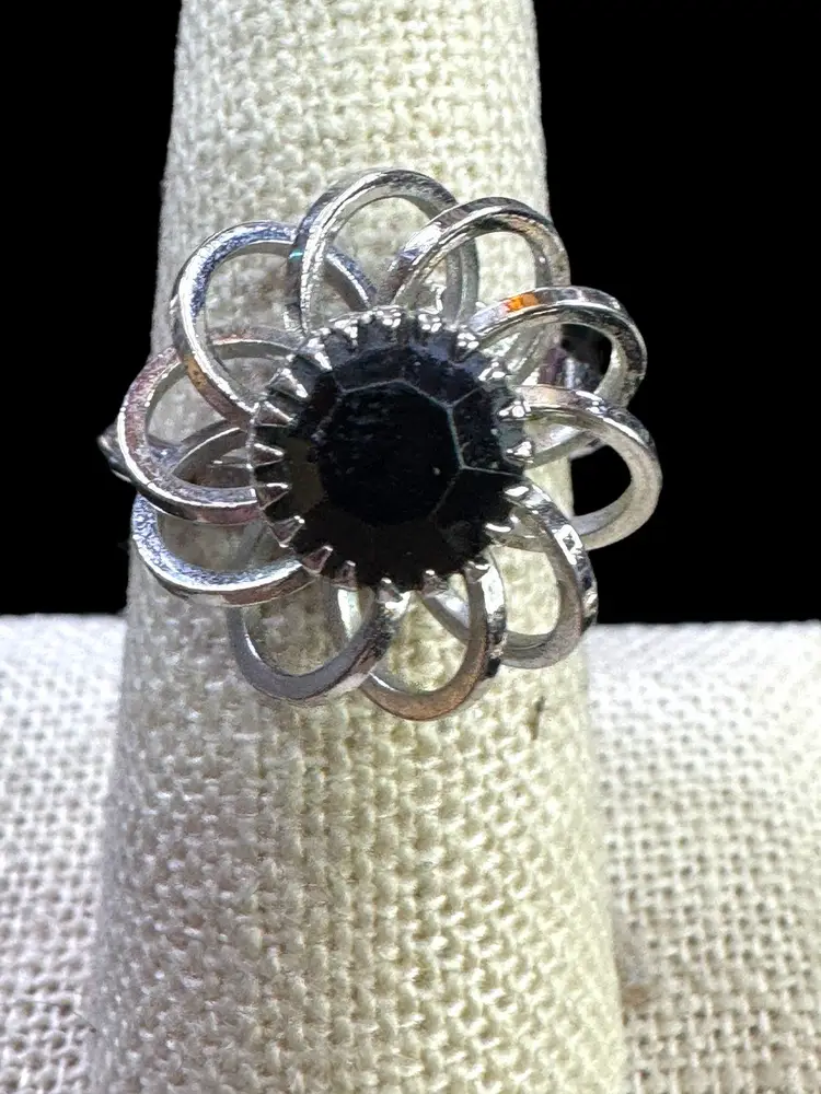 Sara Coventry “Black Beauty” Adjustable Silver Tone Ring- Size 8