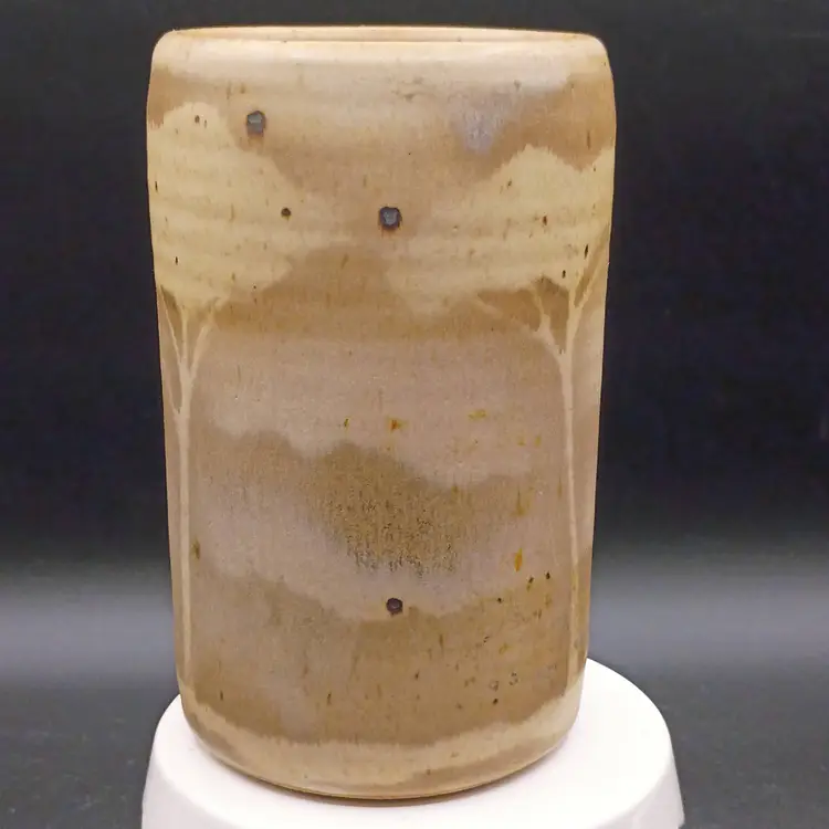 This handmade Studio Art Pottery Vase features a unique Tree design in shades of Brown and Tan, standing at 6 1/2 inches tall. Crafted from clay using pottery techniques, this decorative piece embodies the Art Pottery production style. The intricate design and natural color palette make it a stunning addition to any home decor, showcasing the artistry and creativity of the maker.