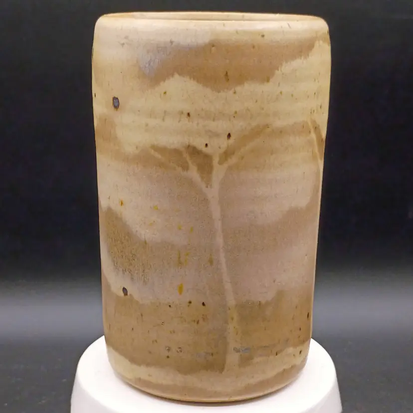 Studio Art Pottery Vase with Tree design Brown Tan 6 1/2 inches