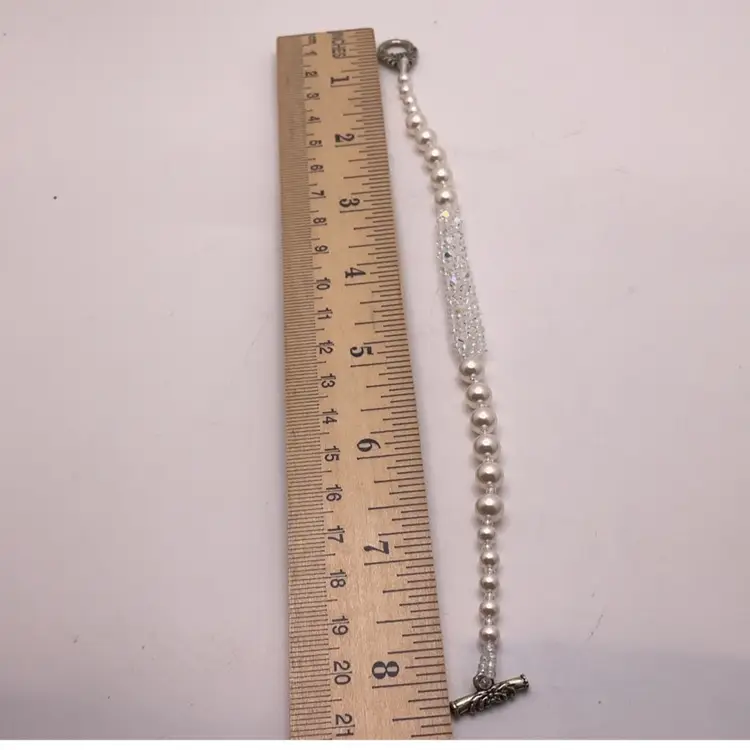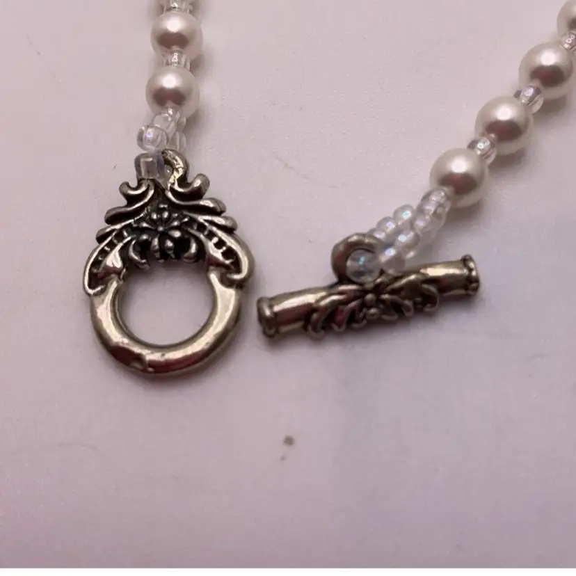 No marking on toggle; decorative silver tone toggle. From an artist's Estate in Southern California. In addition to beadwork, she was a professional porcelain painter.