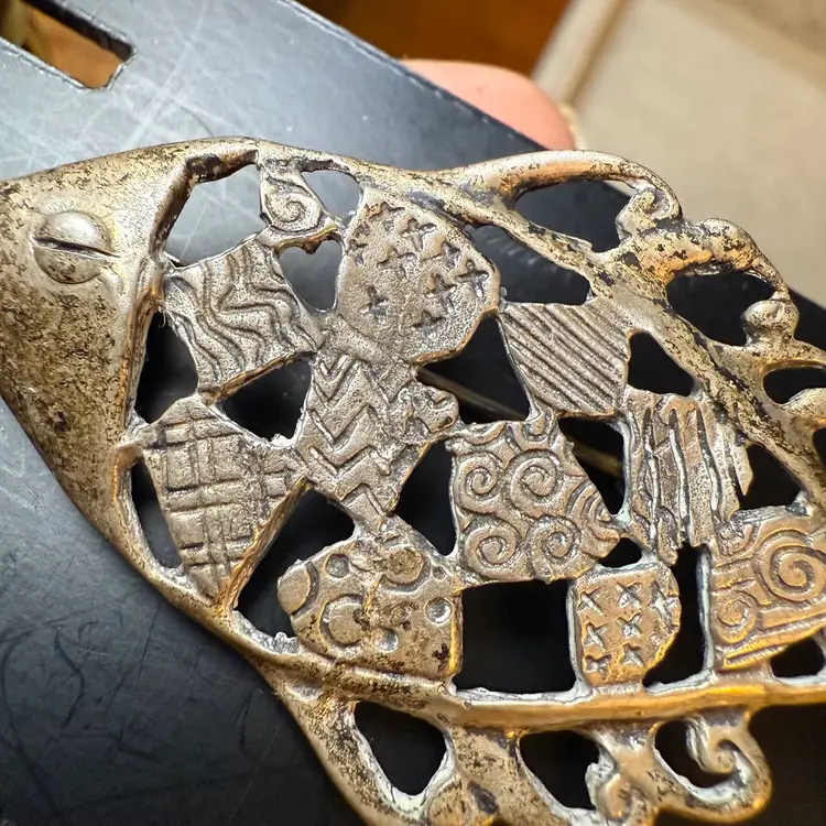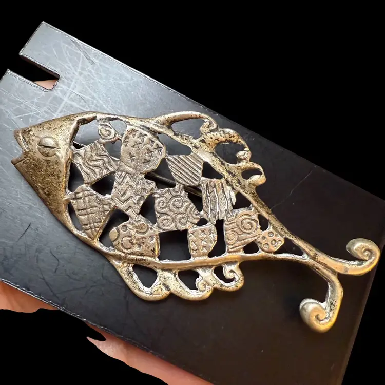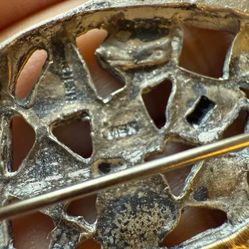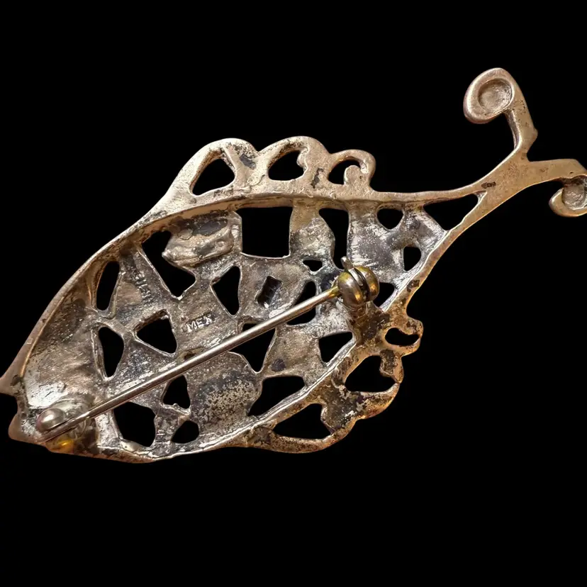 Taxco Mexico Geometric Open Work 925 Sterling Silver Fish Brooch 2.5”