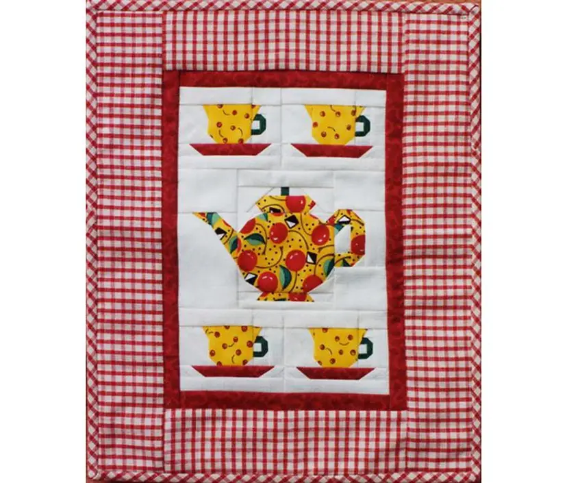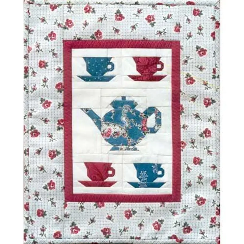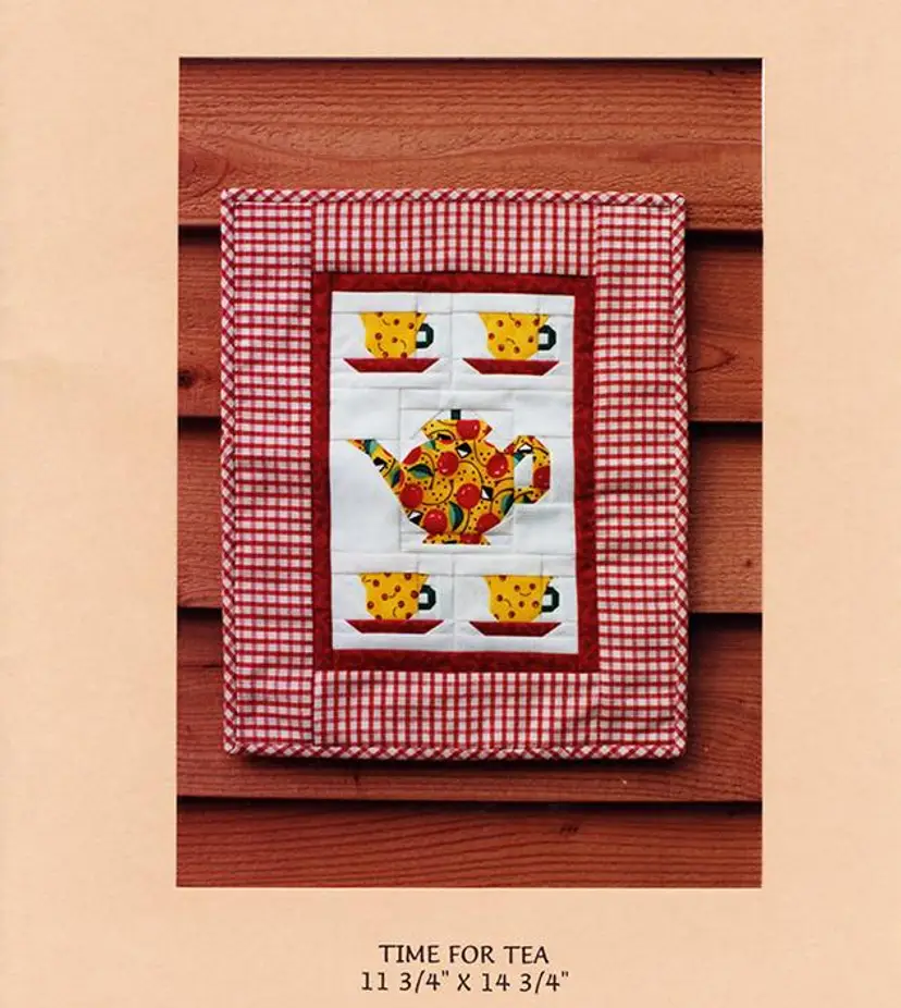 Time For Tea Quilt Pattern Finished size : 11-3/4" x 14-3/4" Paper pieced mini quilt pattern MH Designs, 1996 • This beautiful mini wall quilt is paper pieced. I've made this pattern in many colorways and each one turns out amazing. • Includes instructions and full size paper piecing patterns. • (This is a pattern to make a quilt, not a finished quilt)