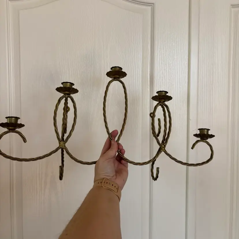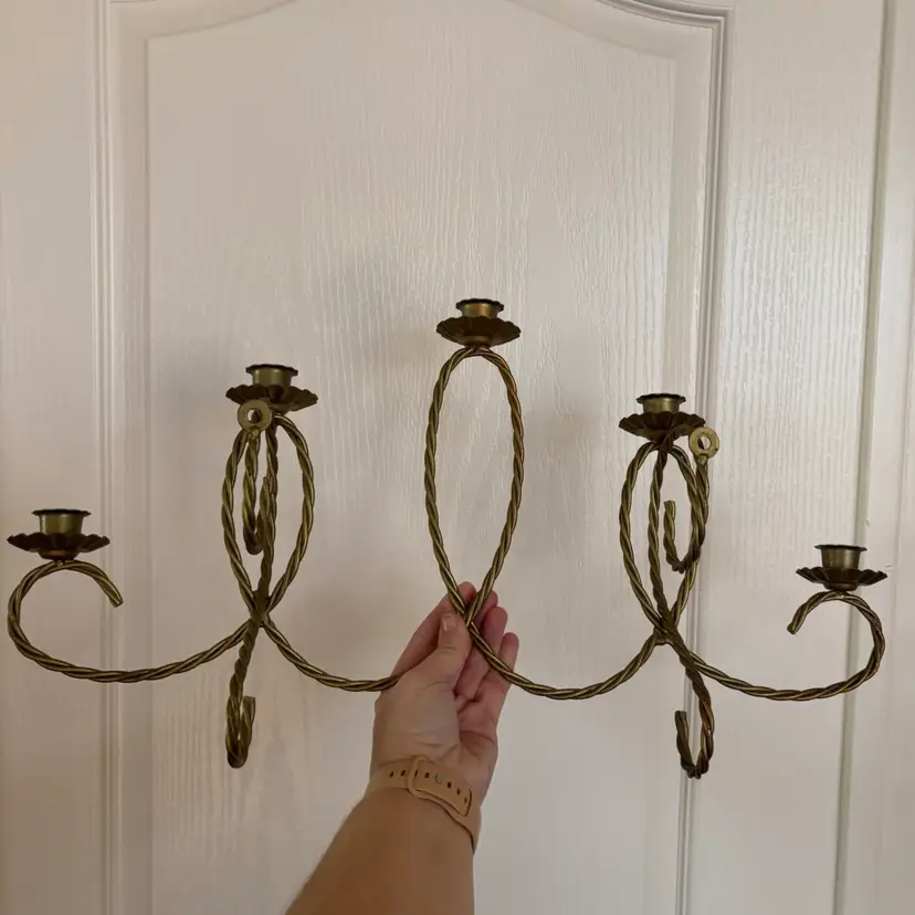 Vintage Brass Tone Twisted Metal Floral Candelabra