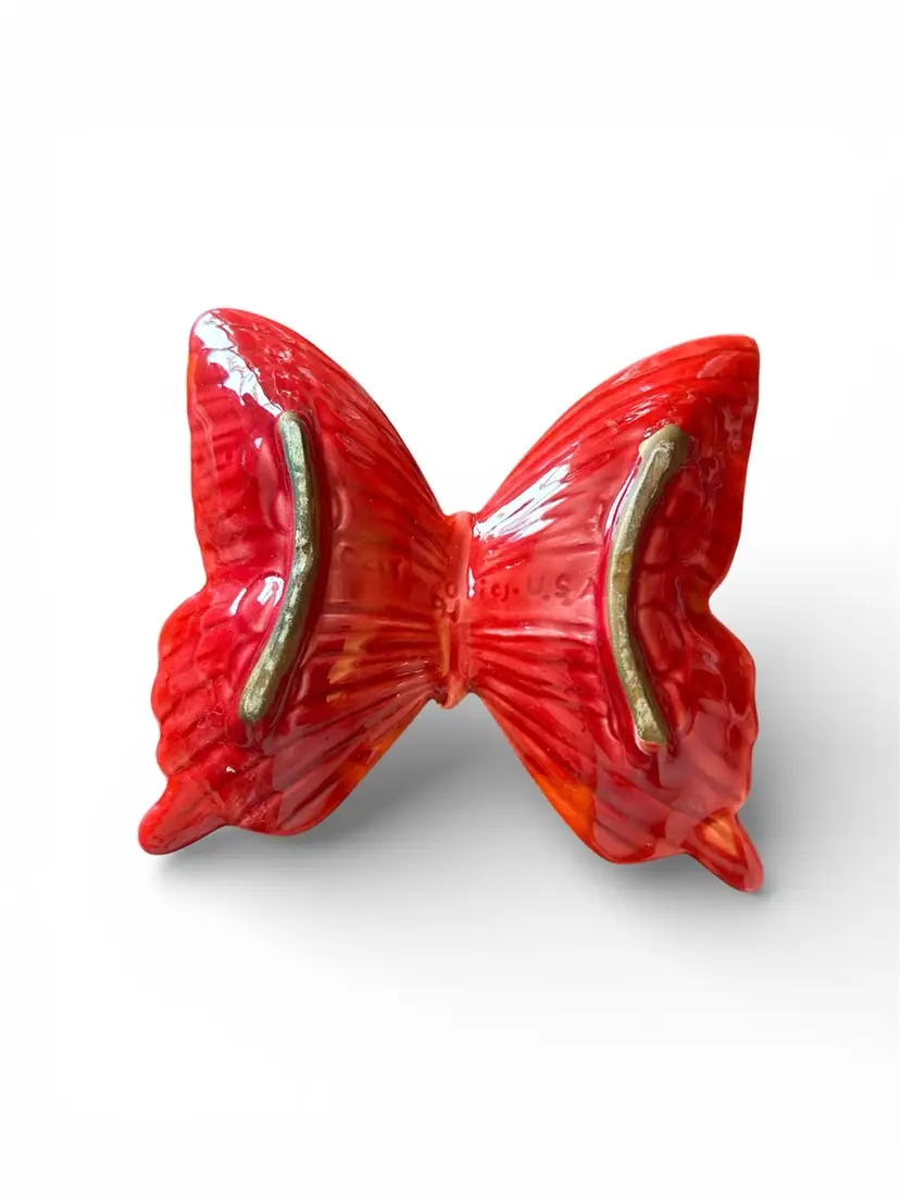 This stunning vintage butterfly ashtray/trinket dish is marked Ccis Oricj. USA 91 on the back Measures approx 6 1/4 “ at widest wing tip to wing tip and approx 5 1/2” in length In good condition for its age , no other marks, scratches, repairs or breaks. *** THERE ARE TWO SMALL FLEA BITES SHOWN & CIRCLED ITS UNDER THE LOWER RIGHT SIDE WING EDGE ON THE BACK (can’t see it from the top ) SEE PHOTOS***