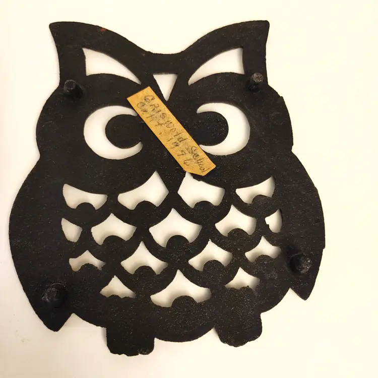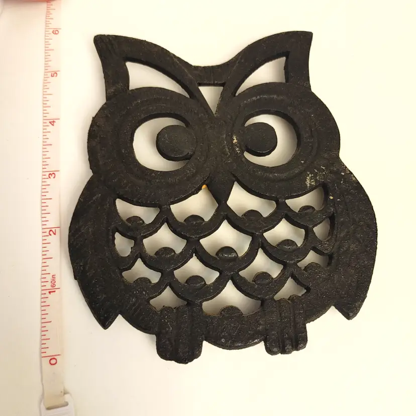 Vintage Cast iron owl trivet. 1970's. Made in Taiwan. 6 x 5.
