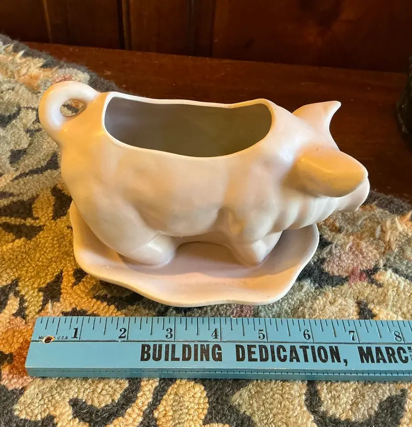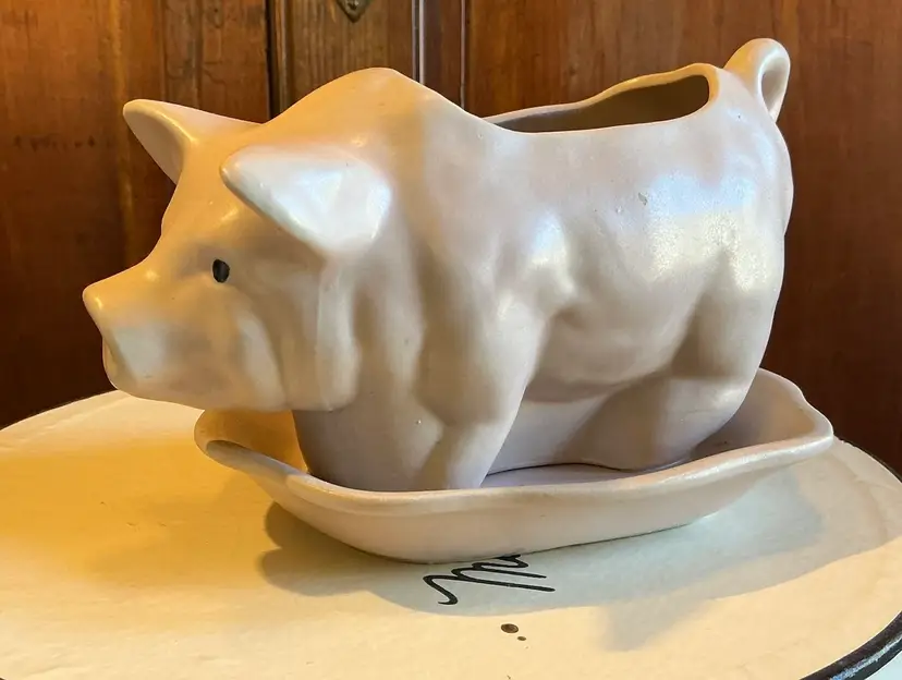 Vintage 1980’s Ceramic Pink Pig Planter with a bowl shaped base.