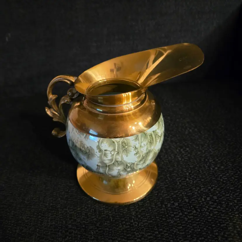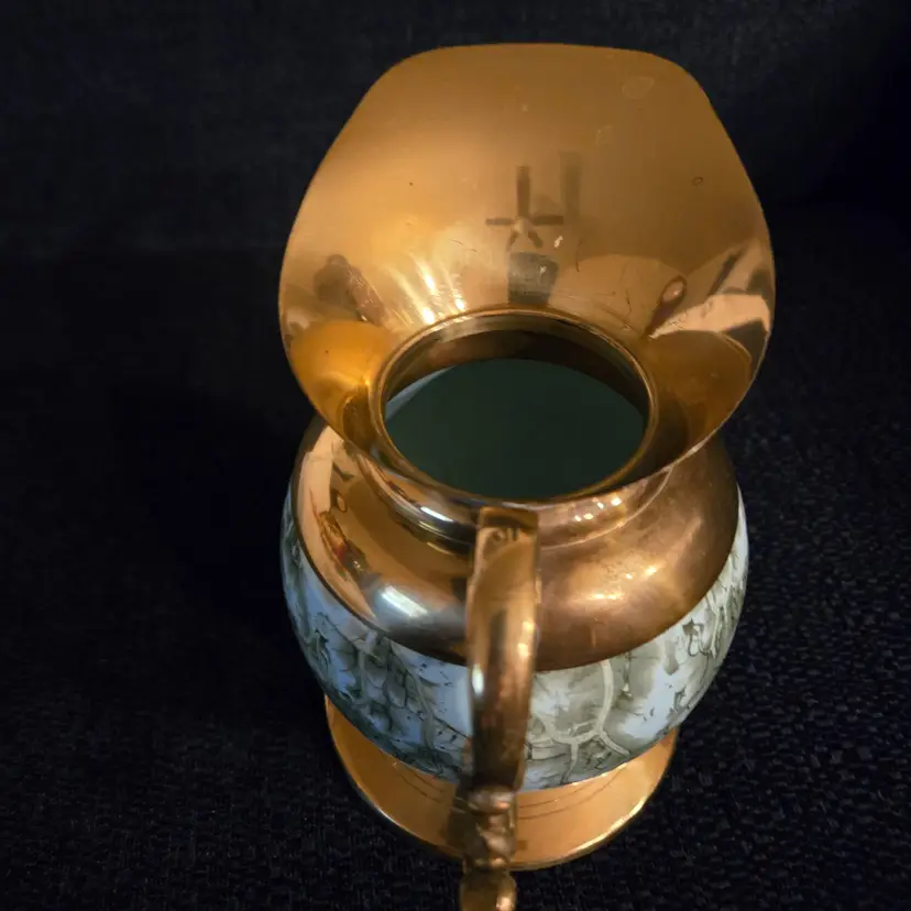 Vintage Dutch Holland Brass And Ceramic Pitcher-Vase