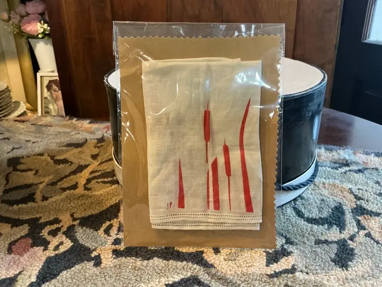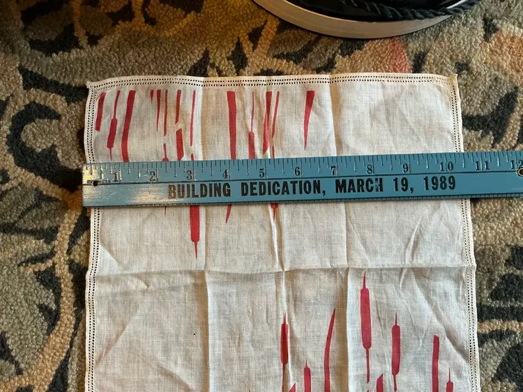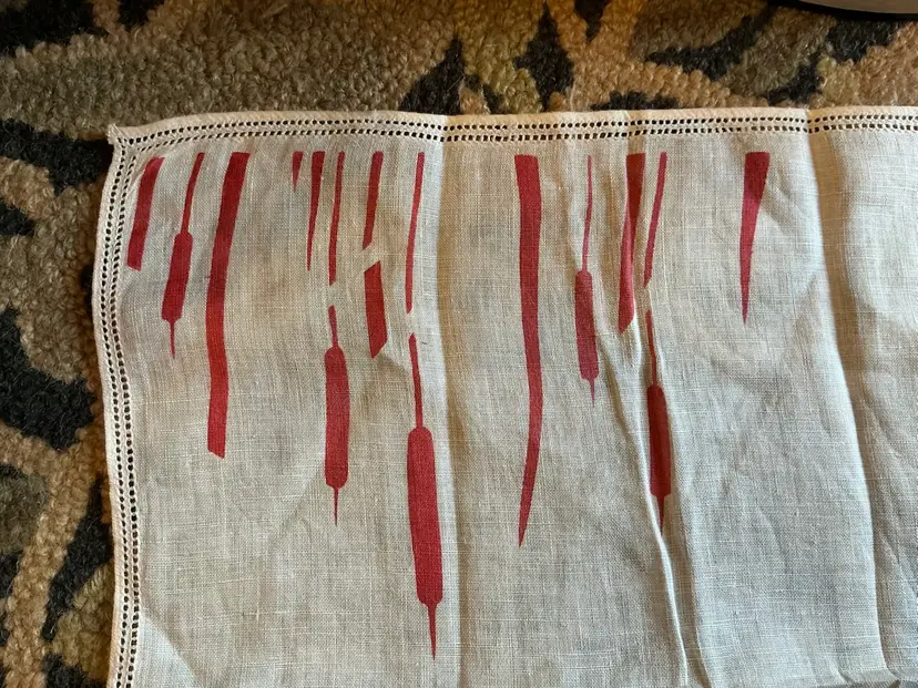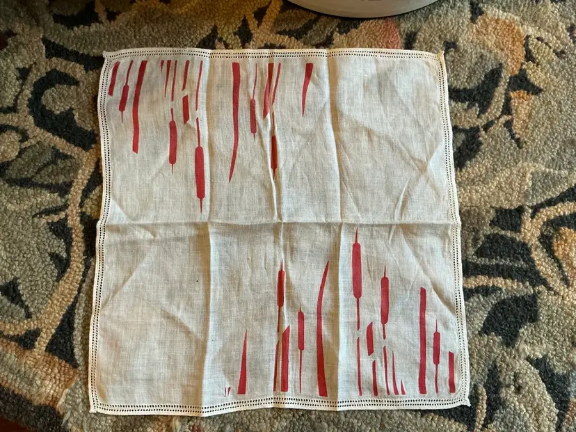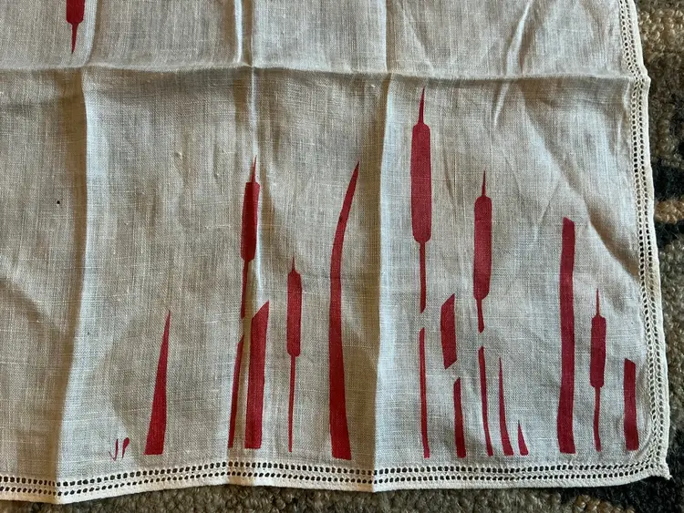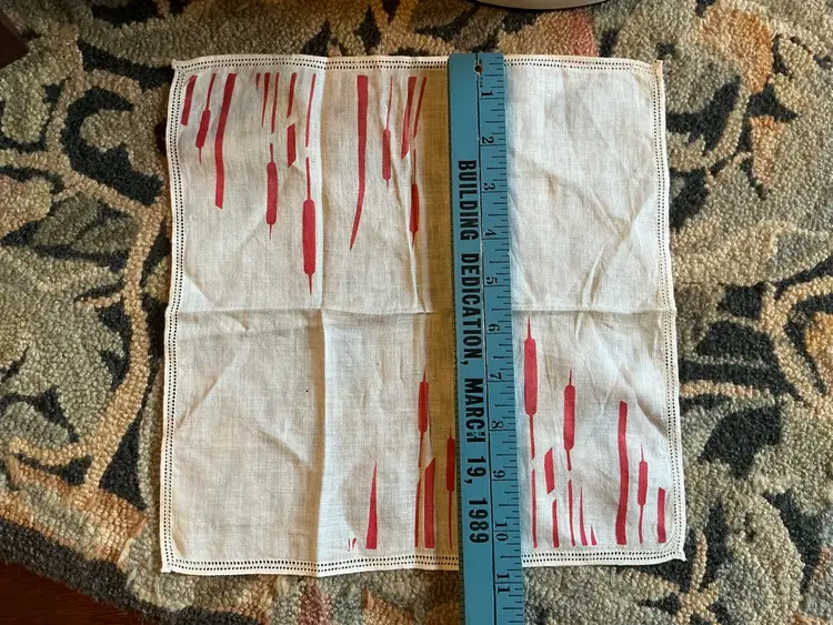 This vintage linen handkerchief dates to the 1950’s.