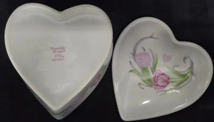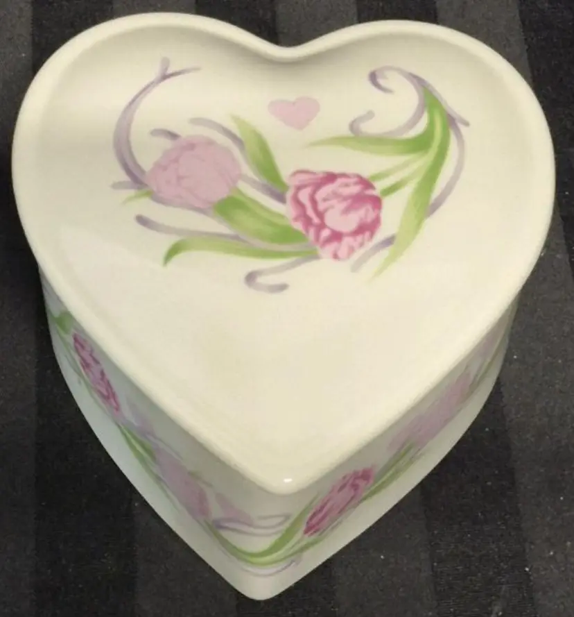Vintage Large Heart Shape Trinket Box - Ceramic Korea