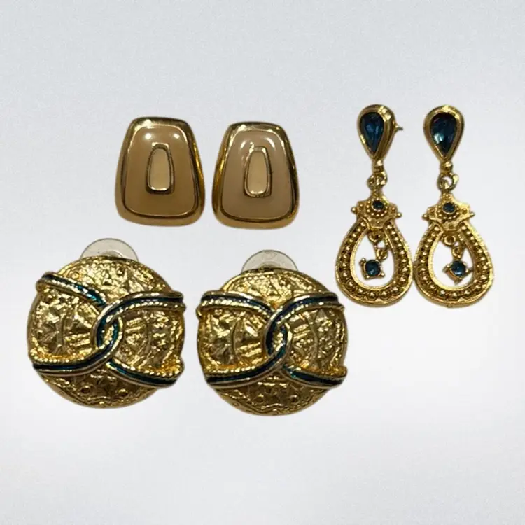Vintage Lot (3) Pairs 80’s-90’s Goldtone Post Earrings, w/ Napier & Berebi