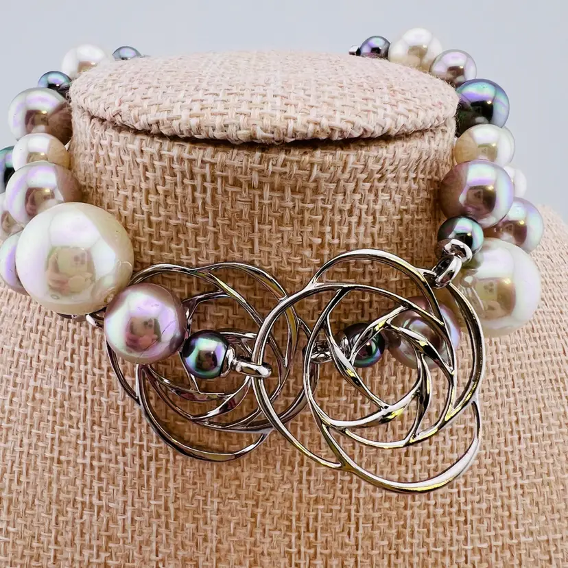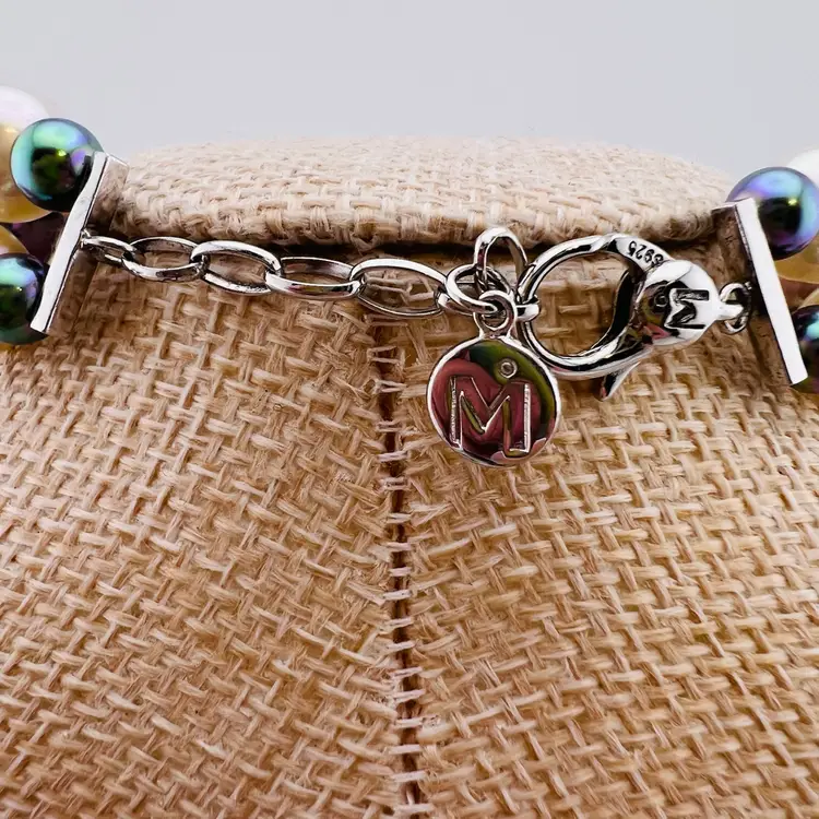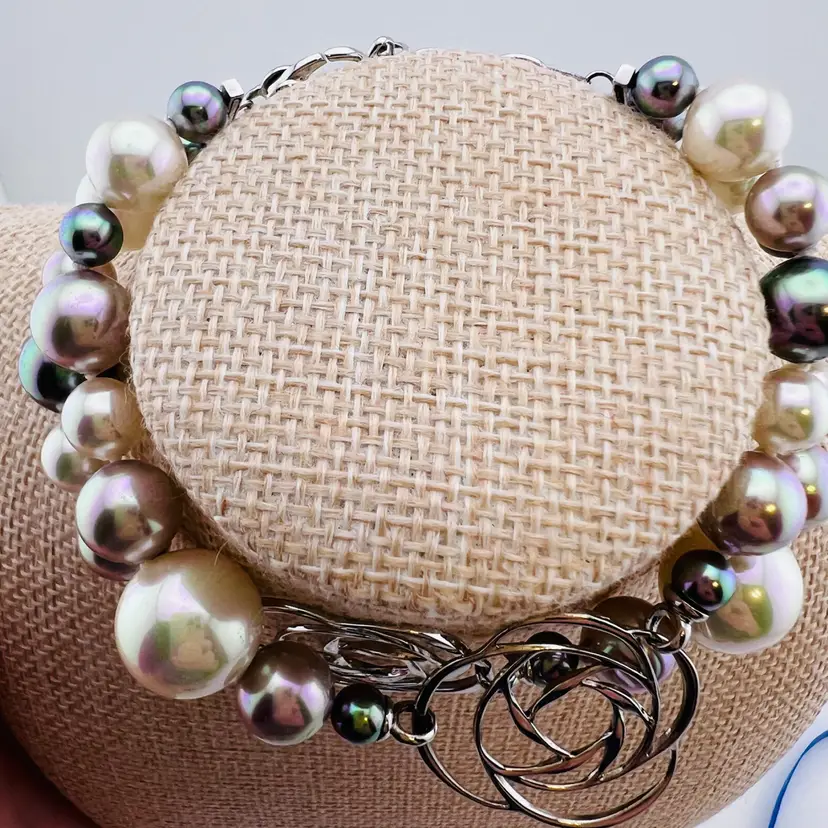 Bracelet is 9” long, in gorgeous condition. Marked S925, untested. I believe these are simulated pearls.
