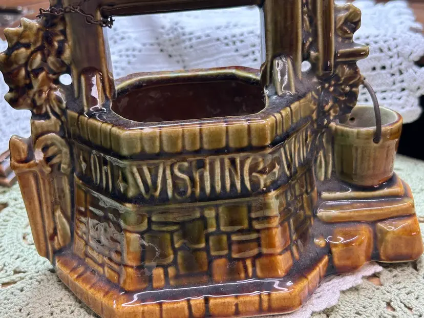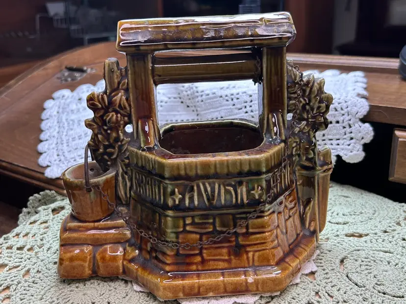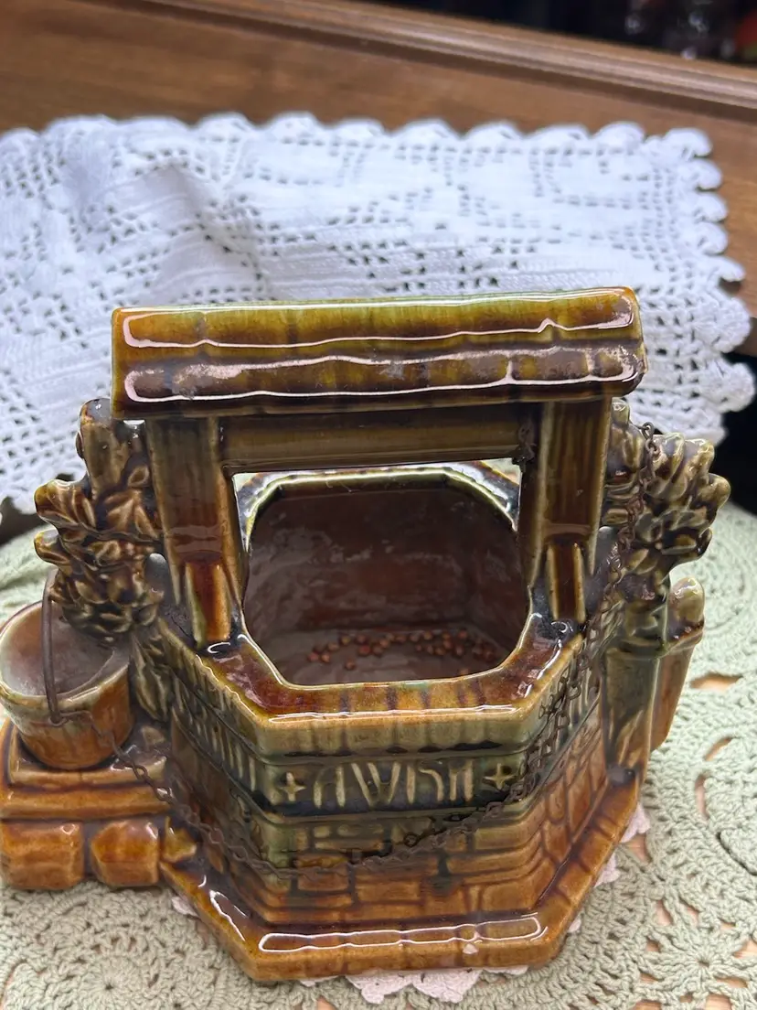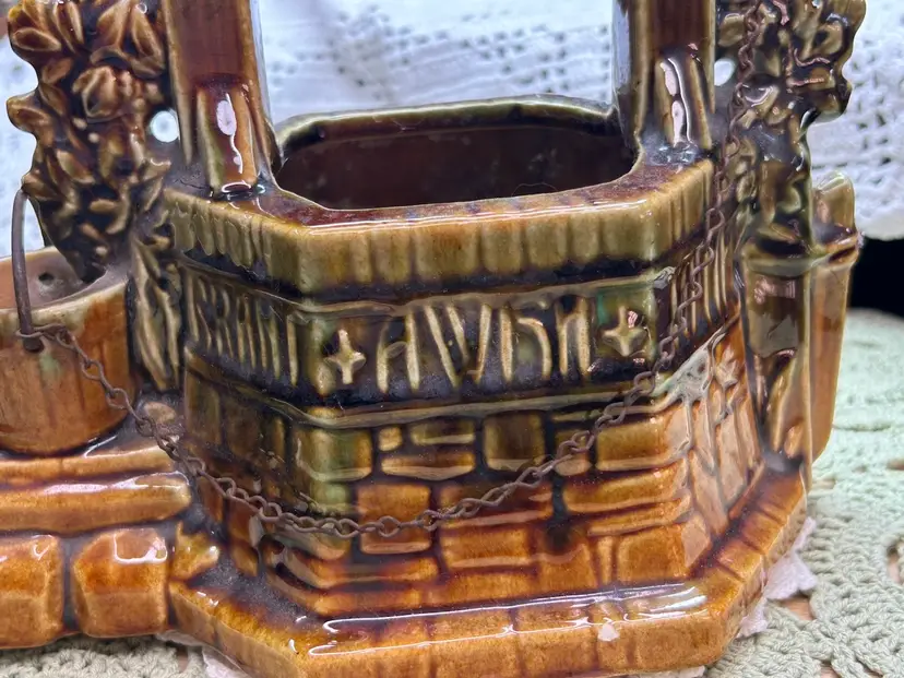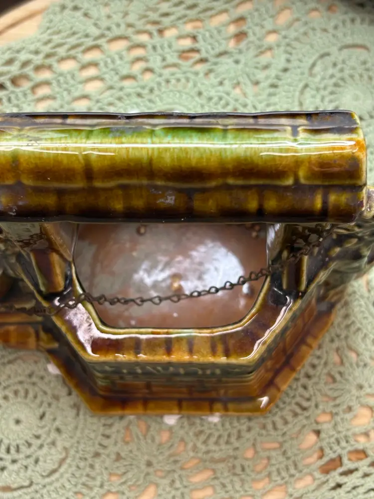 In very good one small chip in glaze. No cracks. See photo for full details of condition.Height 6.5" Width 6.5" Depth 4.5". Well Depth 2 3/4".