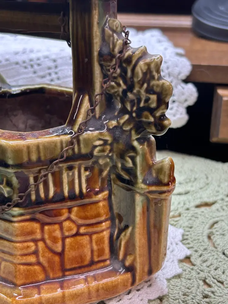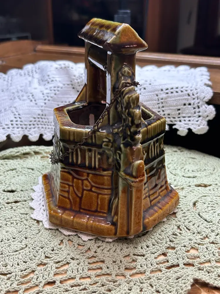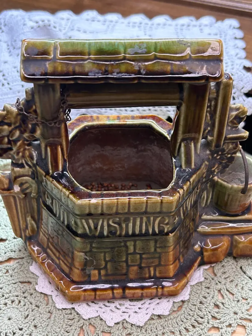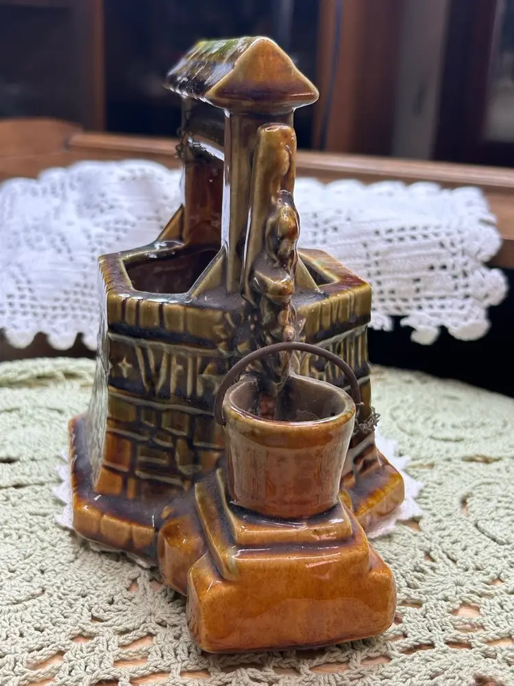 In very good one small chip in glaze. No cracks. See photo for full details of condition.Height 6.5" Width 6.5" Depth 4.5". Well Depth 2 3/4".