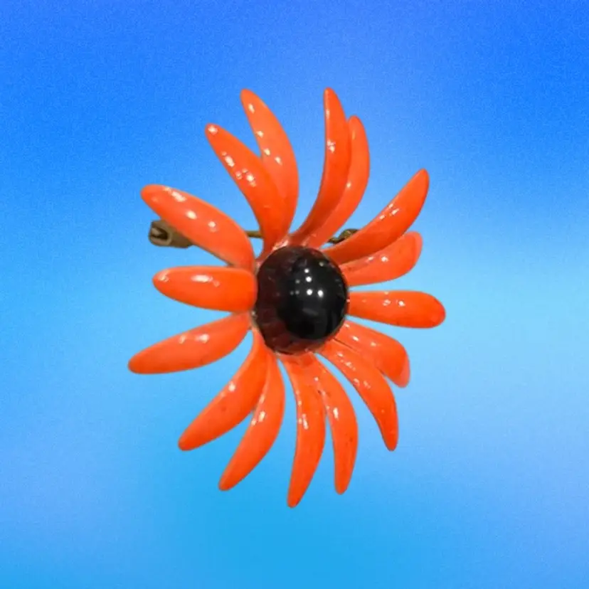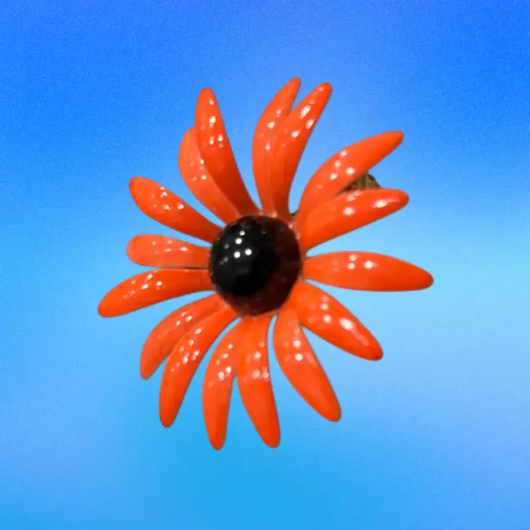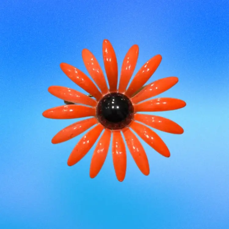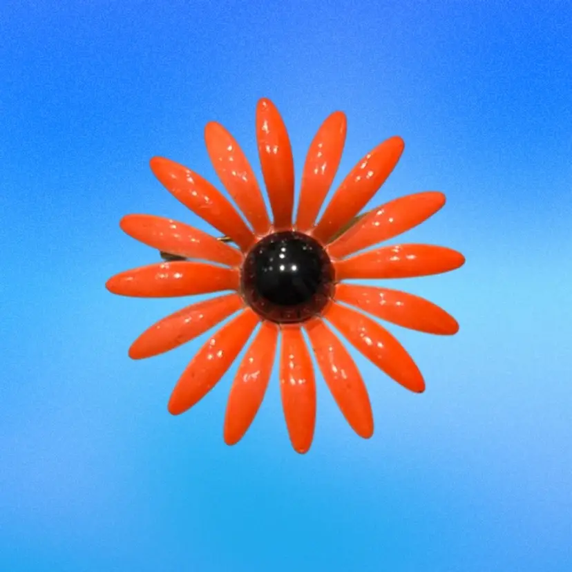 Vintage MCM Orange Black Eyed Susie Enamel Flower Brooch, 1.88โ€
