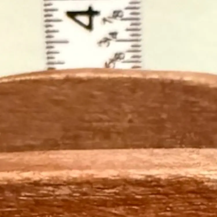 Features a classic, simple wood grain finish and a quaint, scalloped edge design consistent with vintage cottage core or primitive styles. In good vintage condition with minor signs of wear consistent with age, contributing to its authentic rustic charm.
