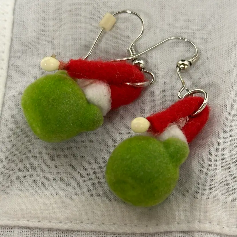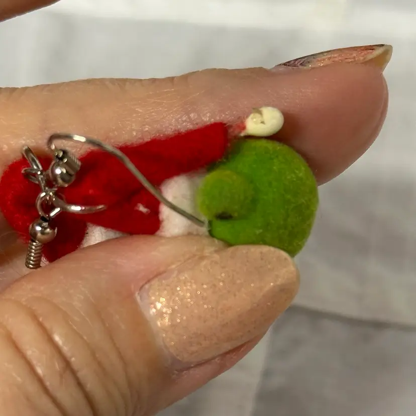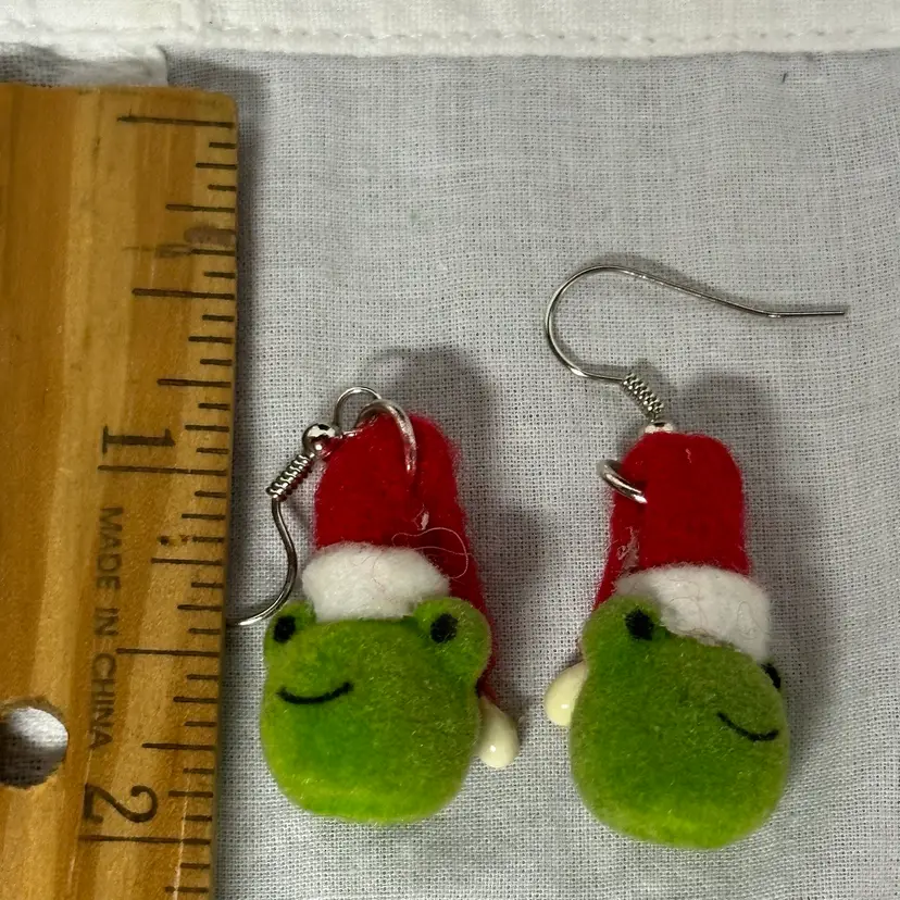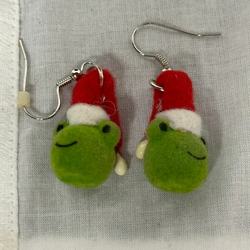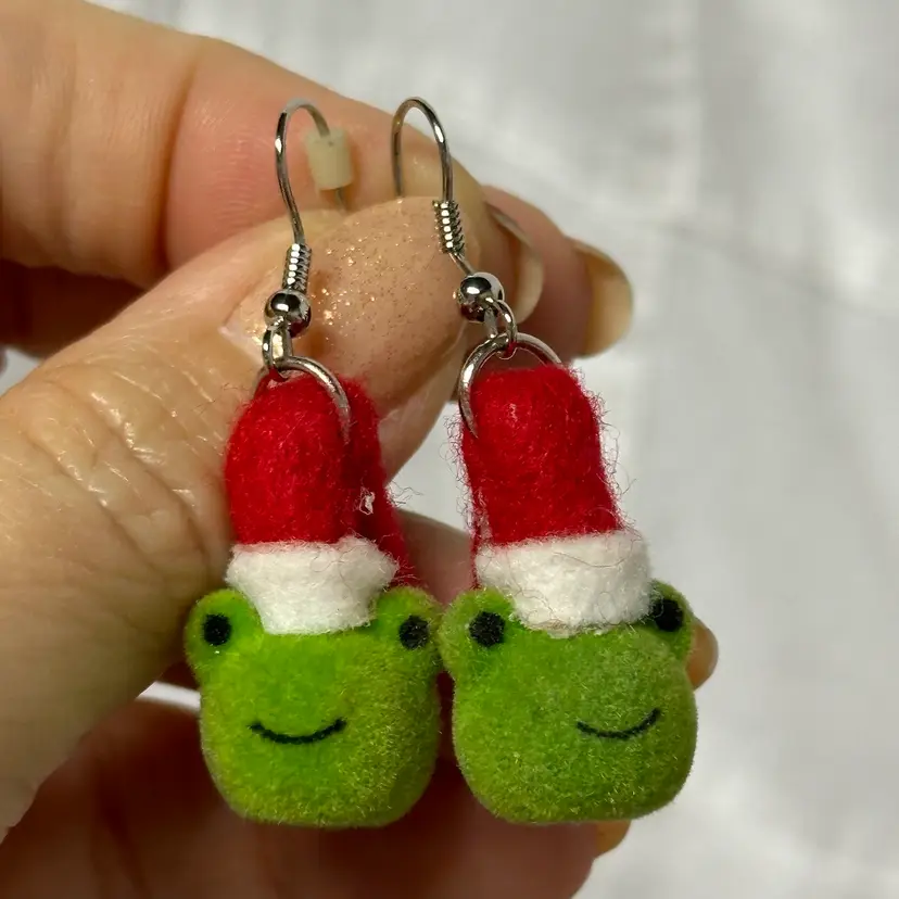 Vintage Velvet Frogs With Santa Hat Pierced Earring